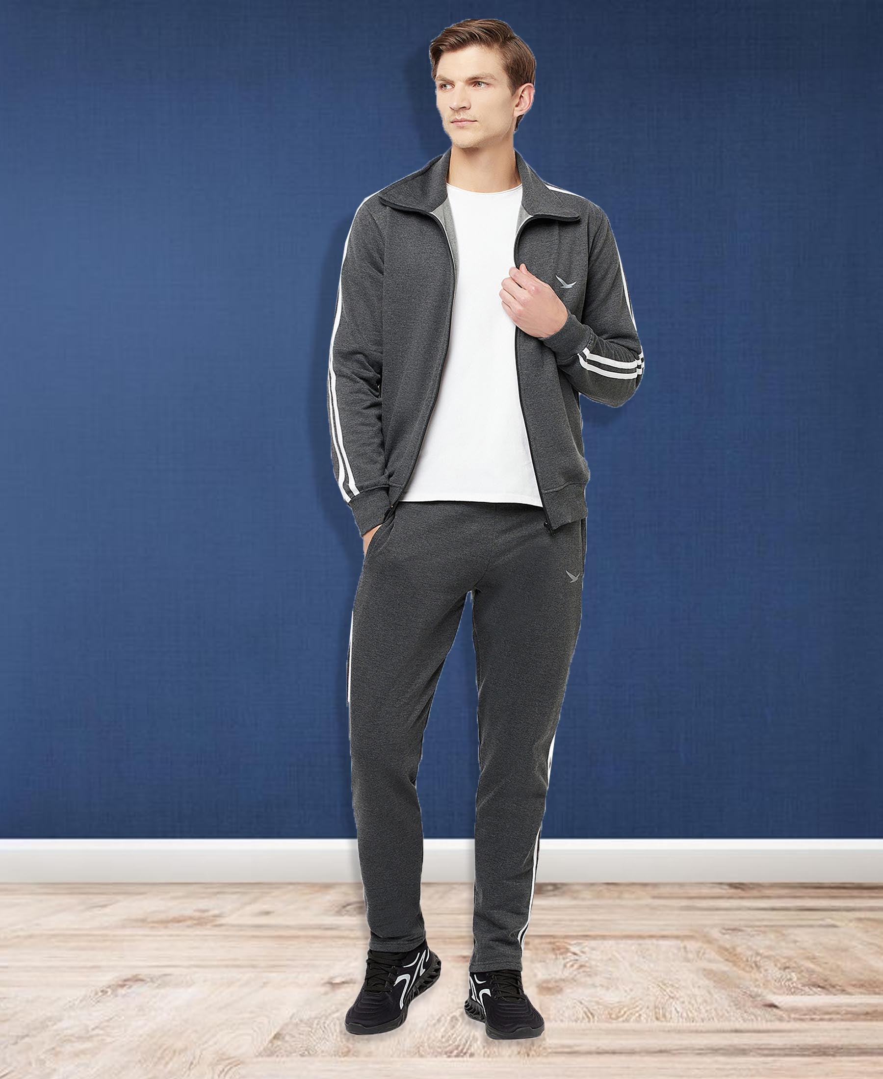HiFlyers Mens Anthra Regular Fit Solid Fleece Tracksuit