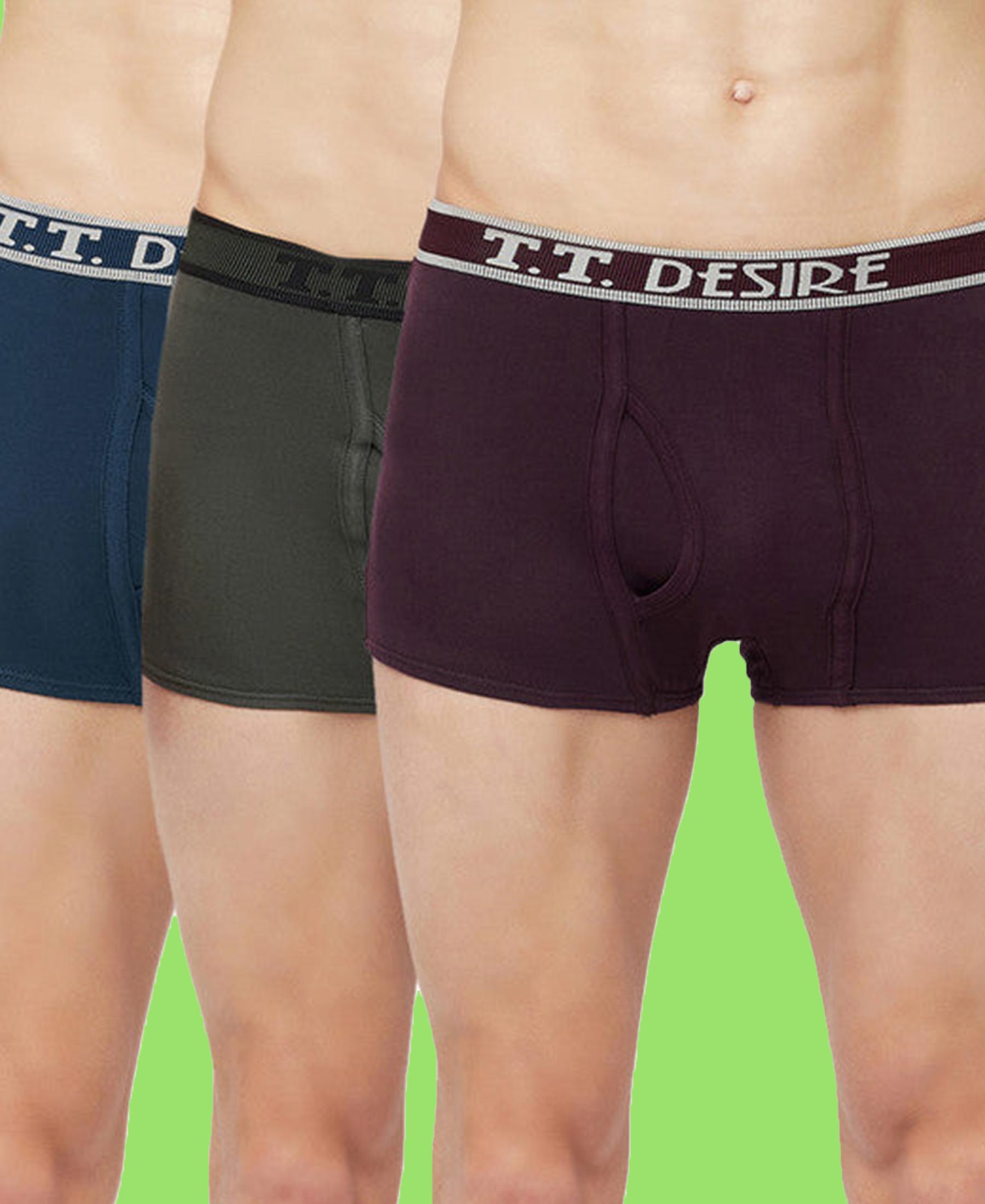 T.T. Mens Desire Fashion Top Elastic Trunk Pack Of 3 Olive-Purple-Blue