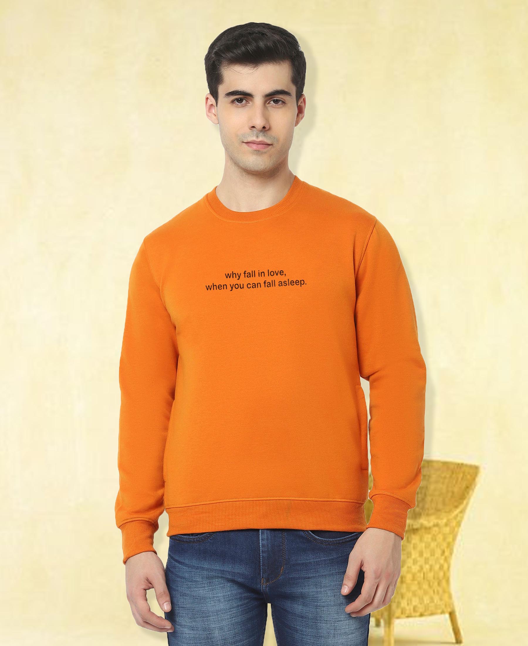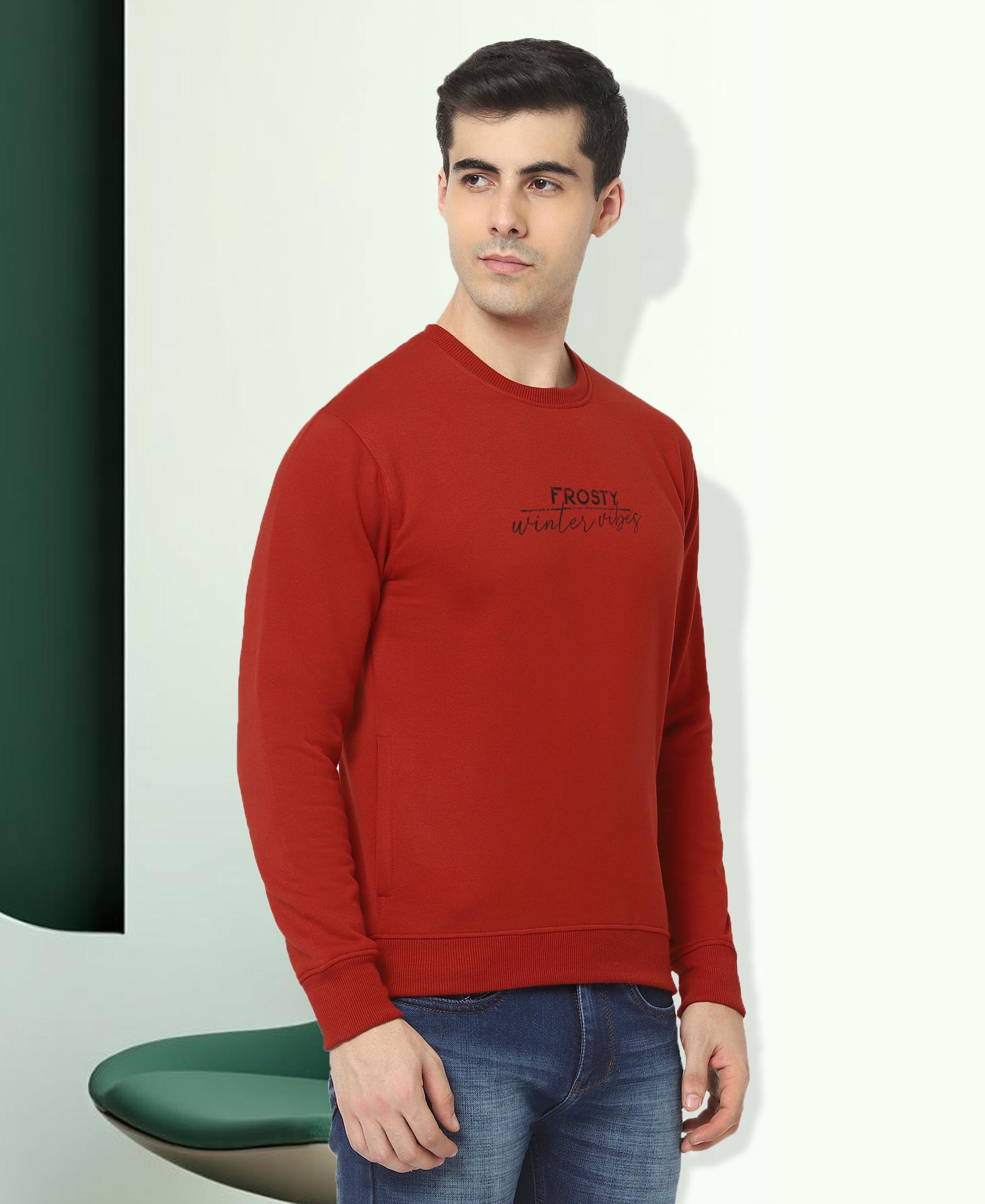HiFlyers Men Slim Fit Slogan Printed Cotton Fleece Sweatshirt -Rust