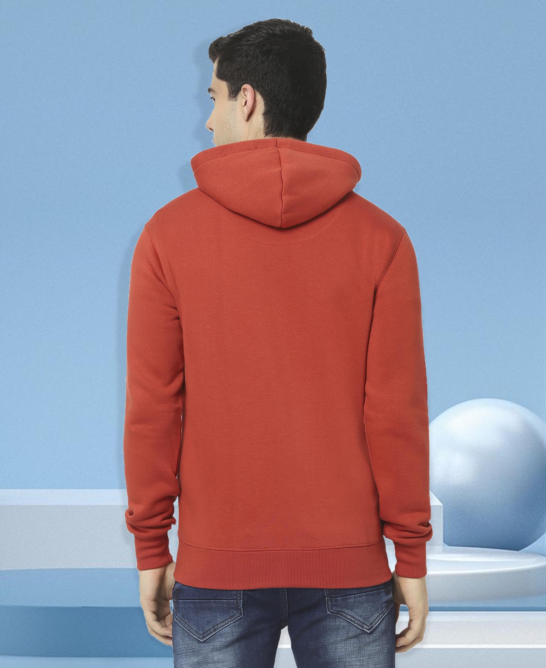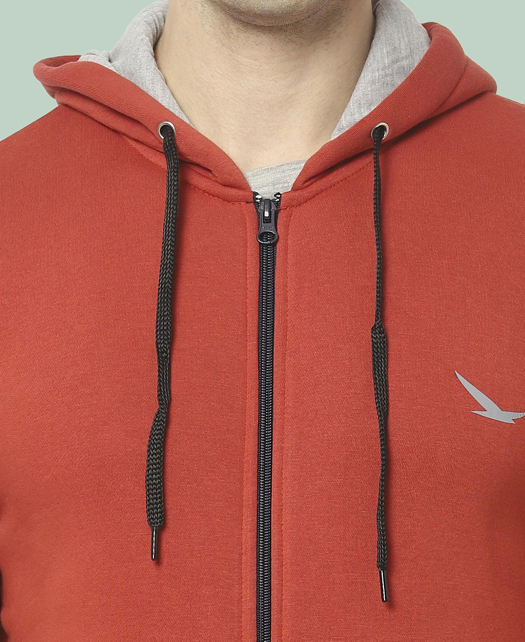 HiFlyers Mens Red Slim Fit Solid Cotton Fleece Sweatshirt With Hood