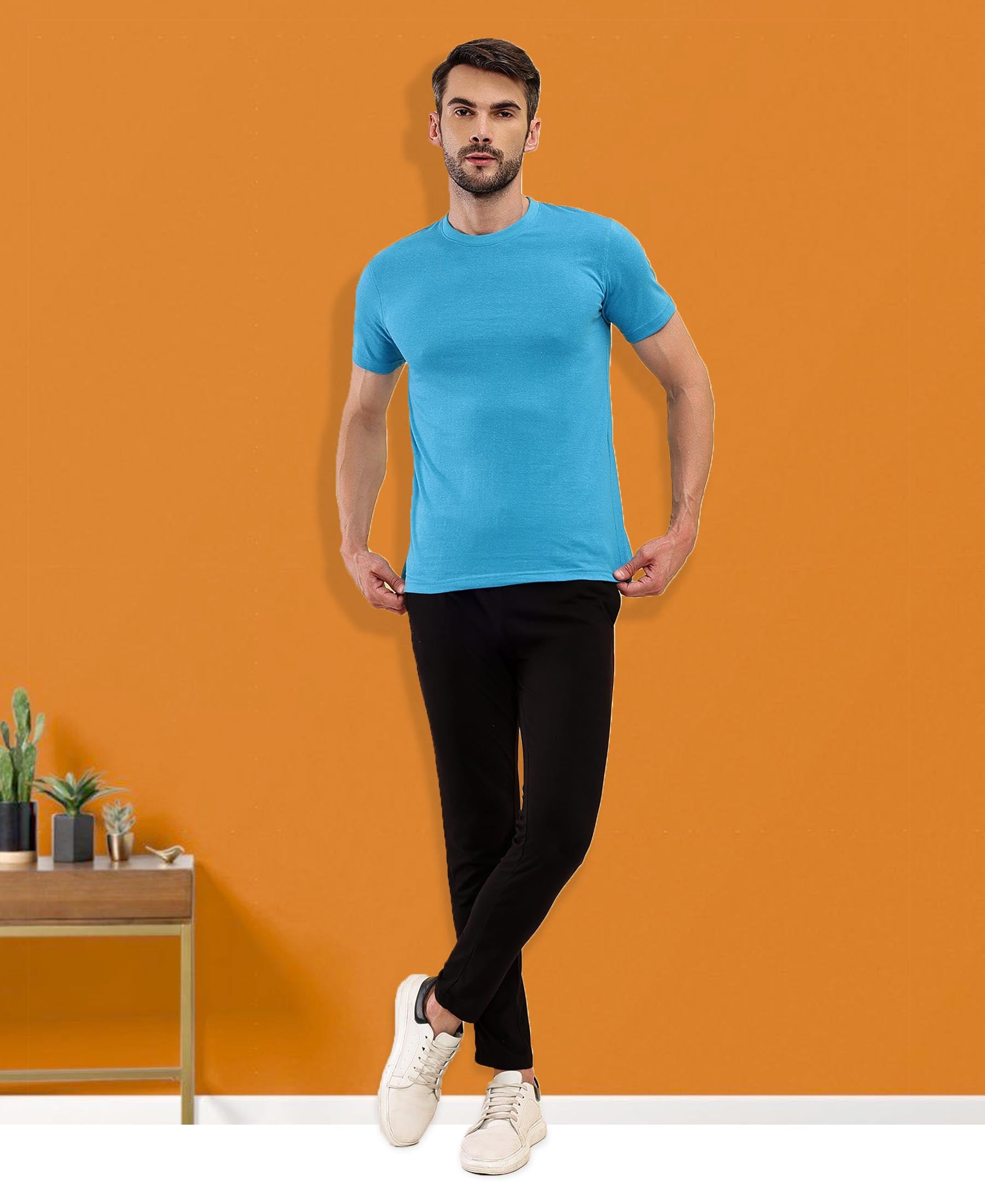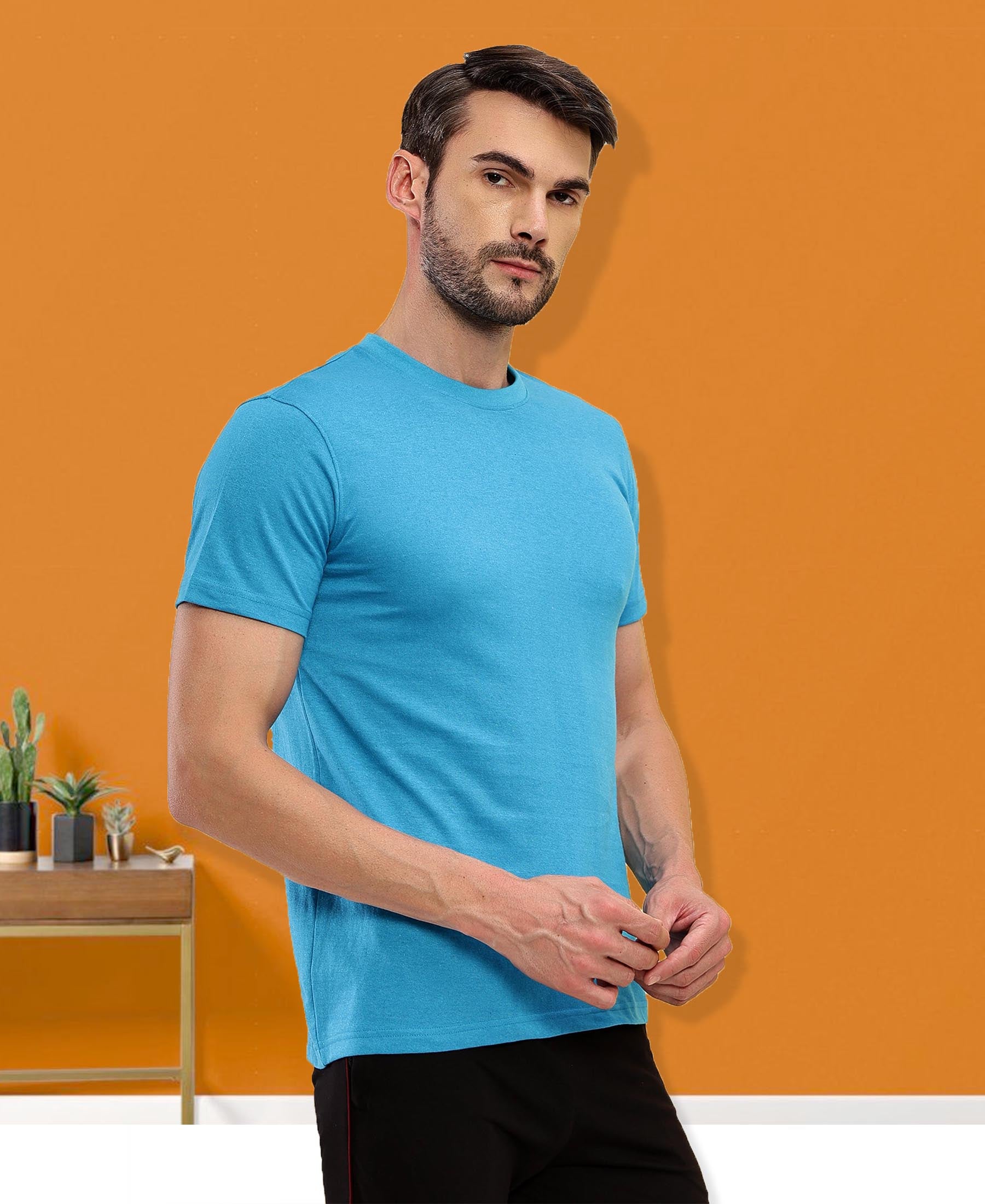 T.T. Men Eco Friendly (Cotton Rich) Recycled Fabric Solid Round Neck Regular Fit Teal Blue