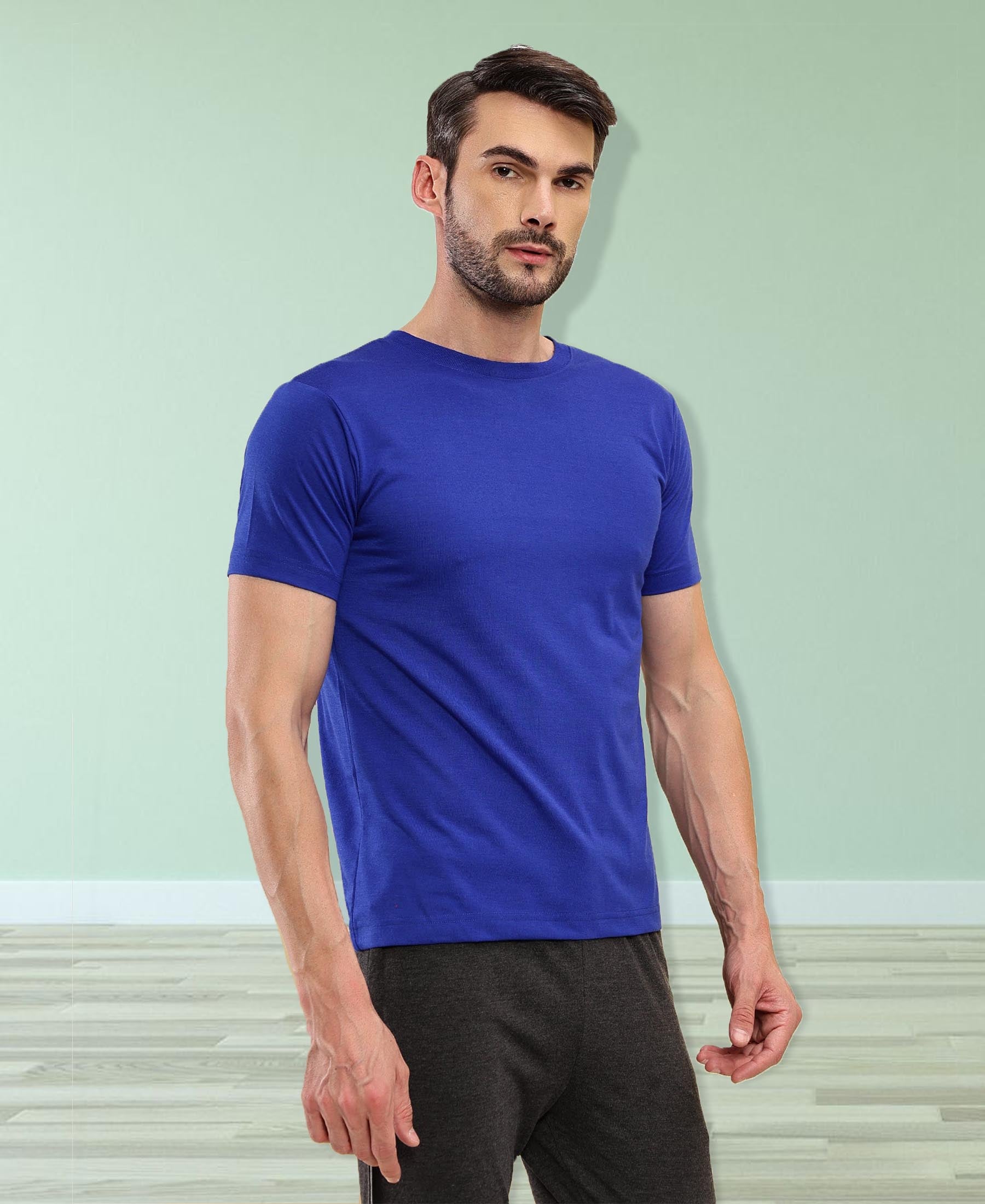 T.T Mens Royal Blue Regular Fit Poly Jersey Round Neck Half Sleeve T-Shirt