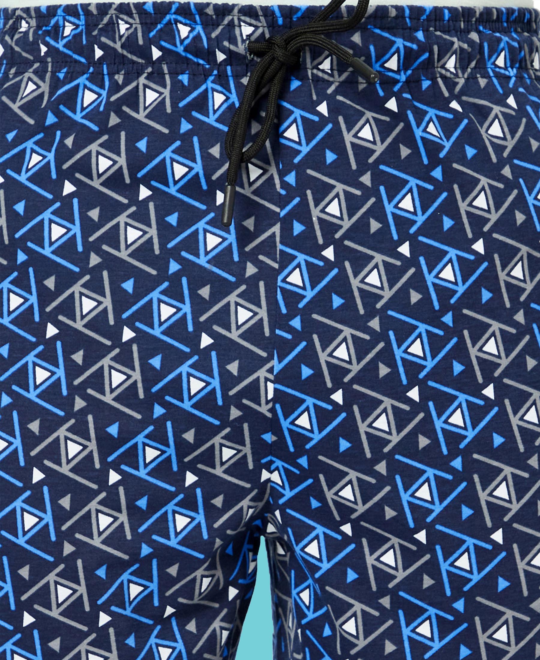 T.T. Mens Cotton Regular Fit Printed Bermuda Shorts With Zipper Navy-Grey