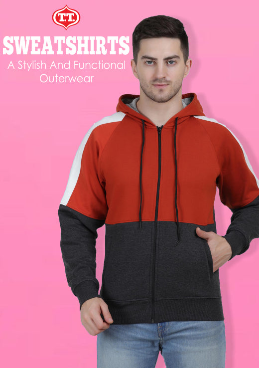 HiFlyers Mens Orange Slim Fit Solid Cotton Fleece Sweatshirt