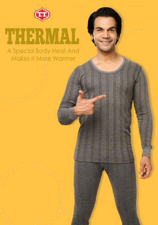 T.T. Men Regular Fit Super Soft, Super Warm Cotton Rich With Elastomeric Finish Thermal Set -Black