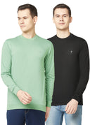 T.T. Men Cotton Polyster Regular Fit Solid Full Sleeve T-Shirt Pack Of 2 (Black-Green )