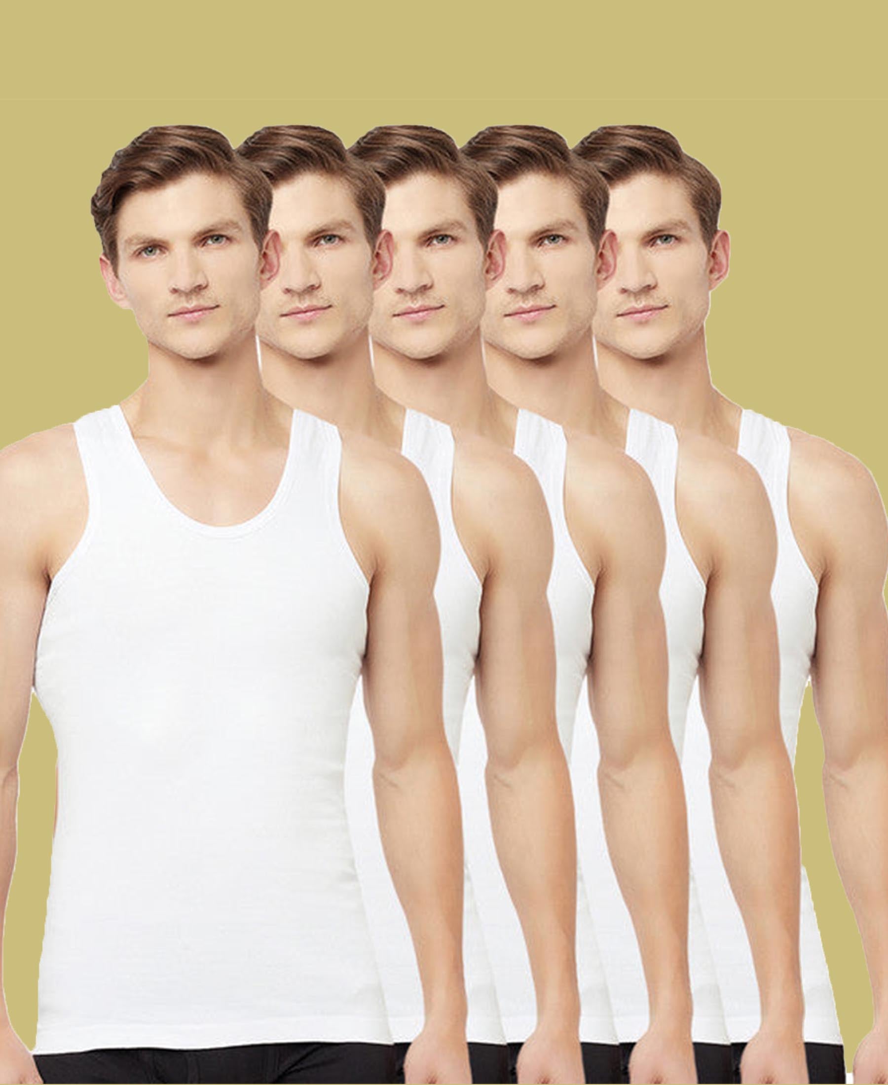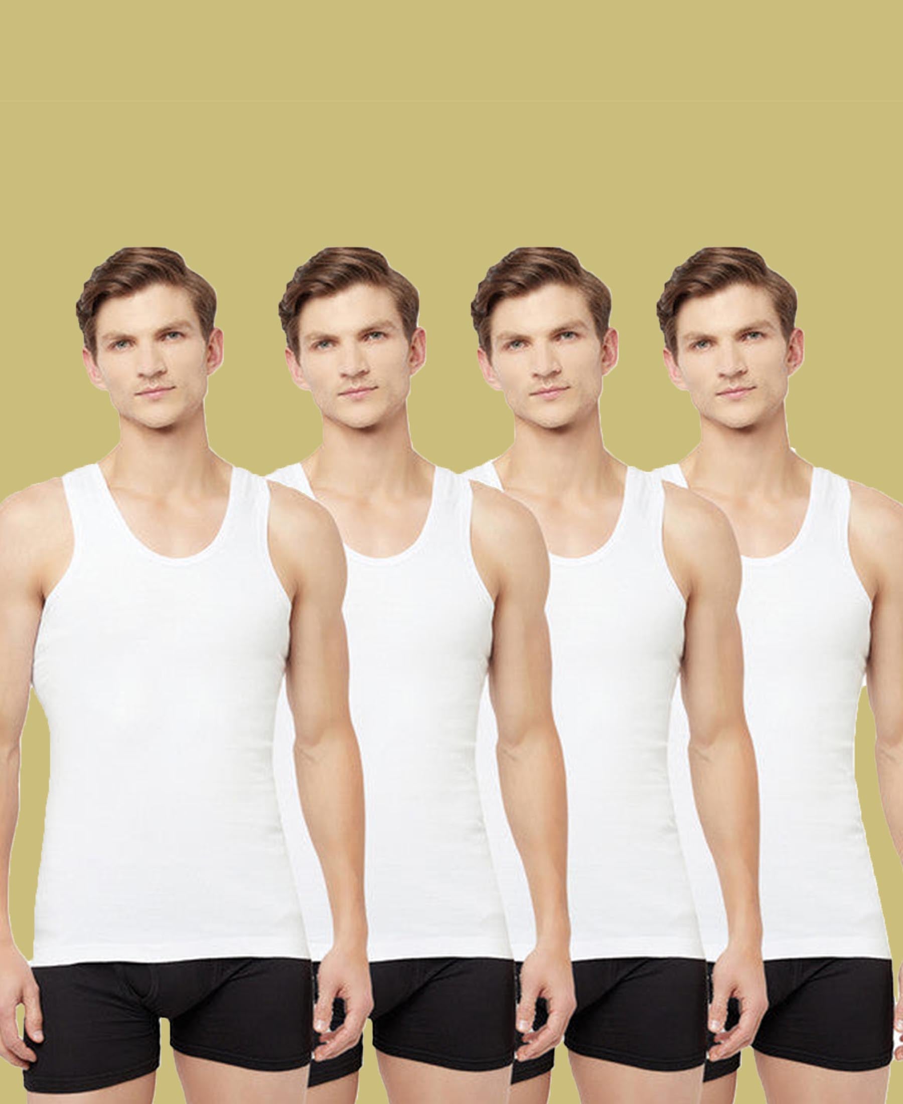 T.T. Men Interlock Vest Sleeveless Pack Of 4 White