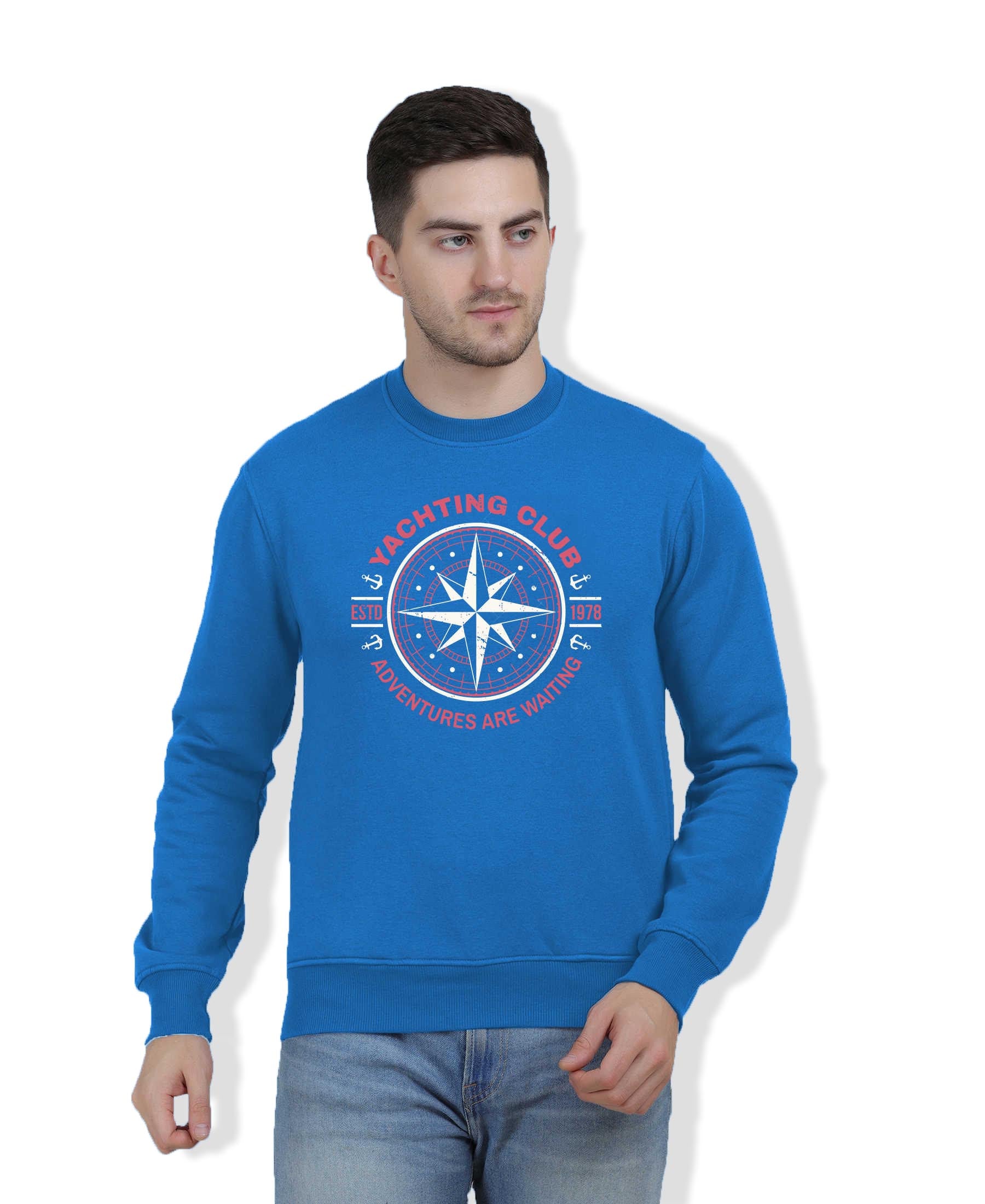 Hiflyers Men|Regular Fit|Chest Printed Cotton Fleece|Soft Stylish Casual Winter Wear Sweatshirt|Blue-P4