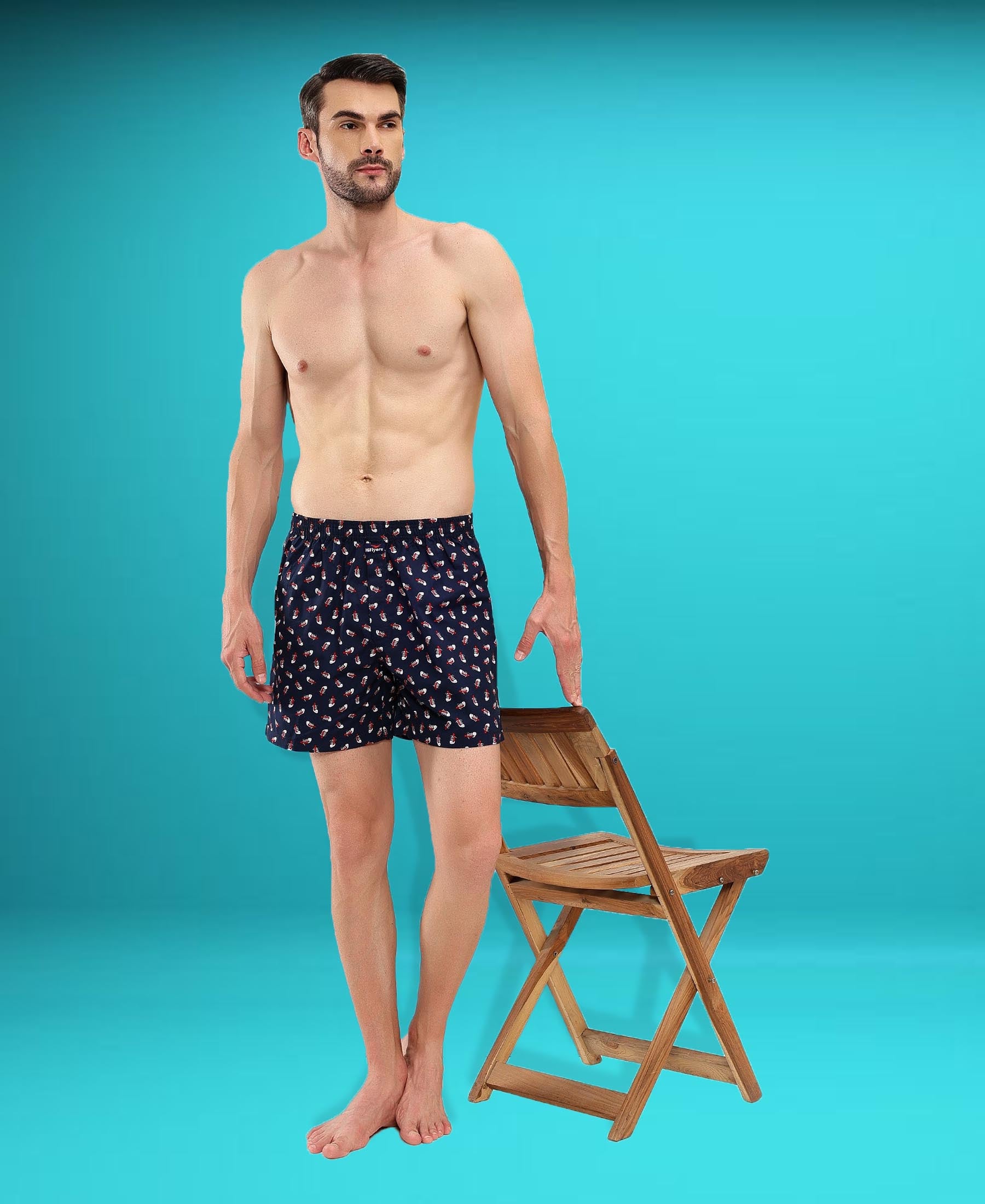 HiFlyers Men Regular Fit Printed Super Combed Cotton Woven Boxer Short Pack Of 1 Blue