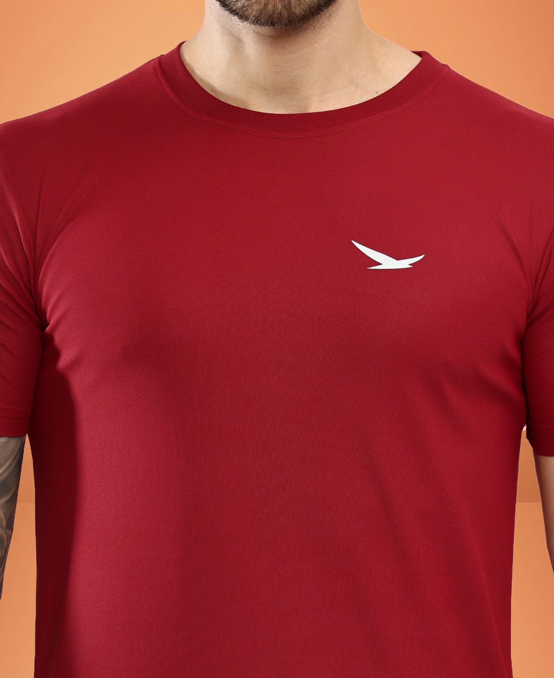 HiFlyers Men Regular Fit Polyster Pique Round Neck Half Sleev Tshirt Maroon