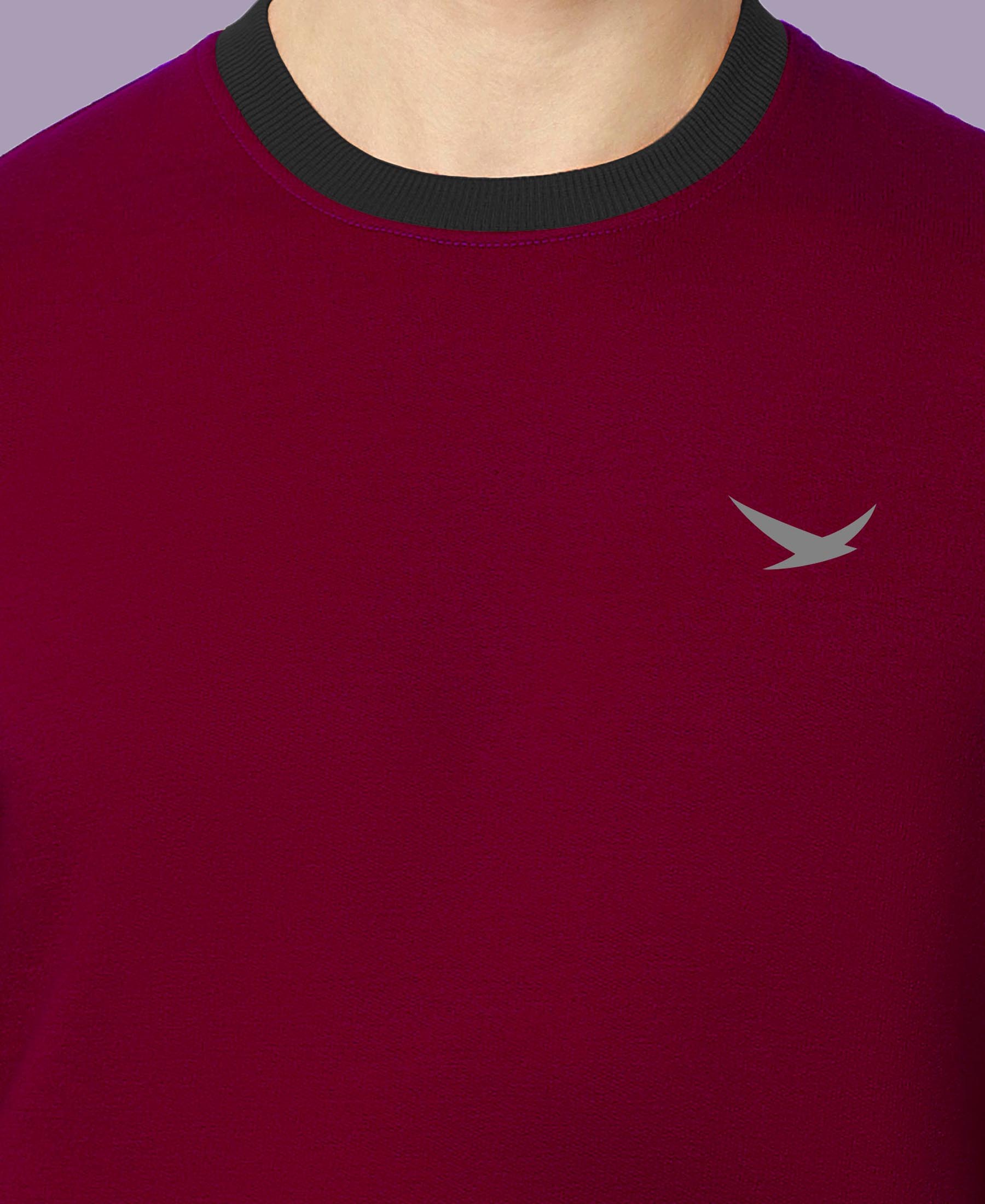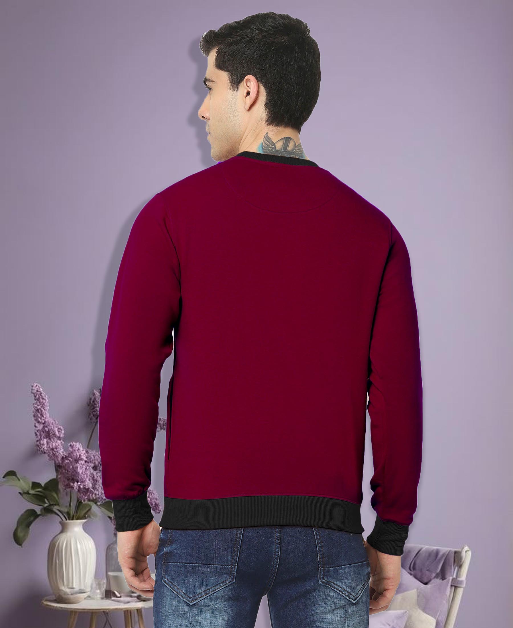 HiFlyers Men Slim Fit Cotrast Rib Cotton Fleece Round Neck Sweatshirt -Maroon