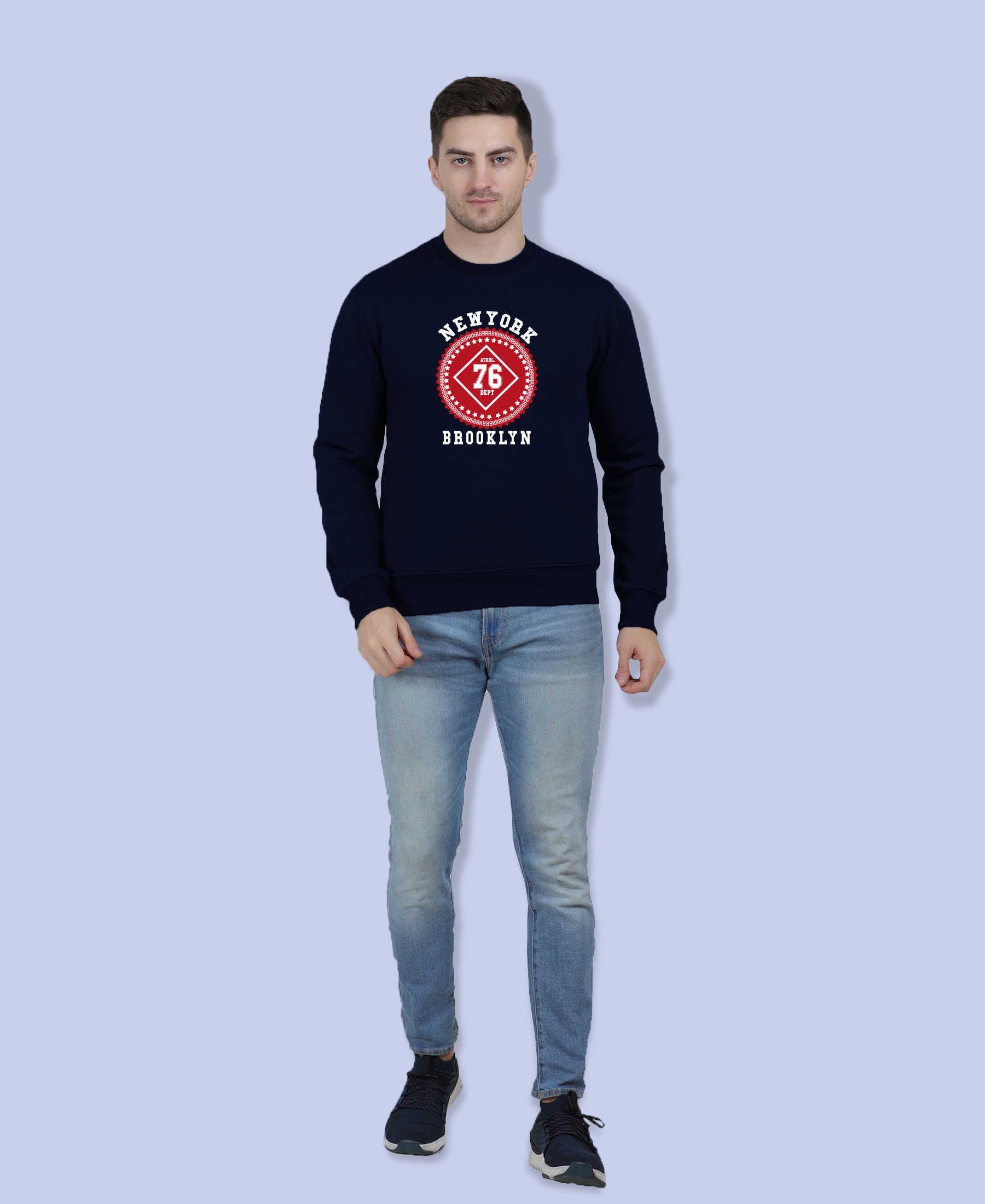Hiflyers Men|Regular Fit|Chest Printed Cotton Fleece|Soft Stylish Casual Winter Wear Sweatshirt|Navy-P12