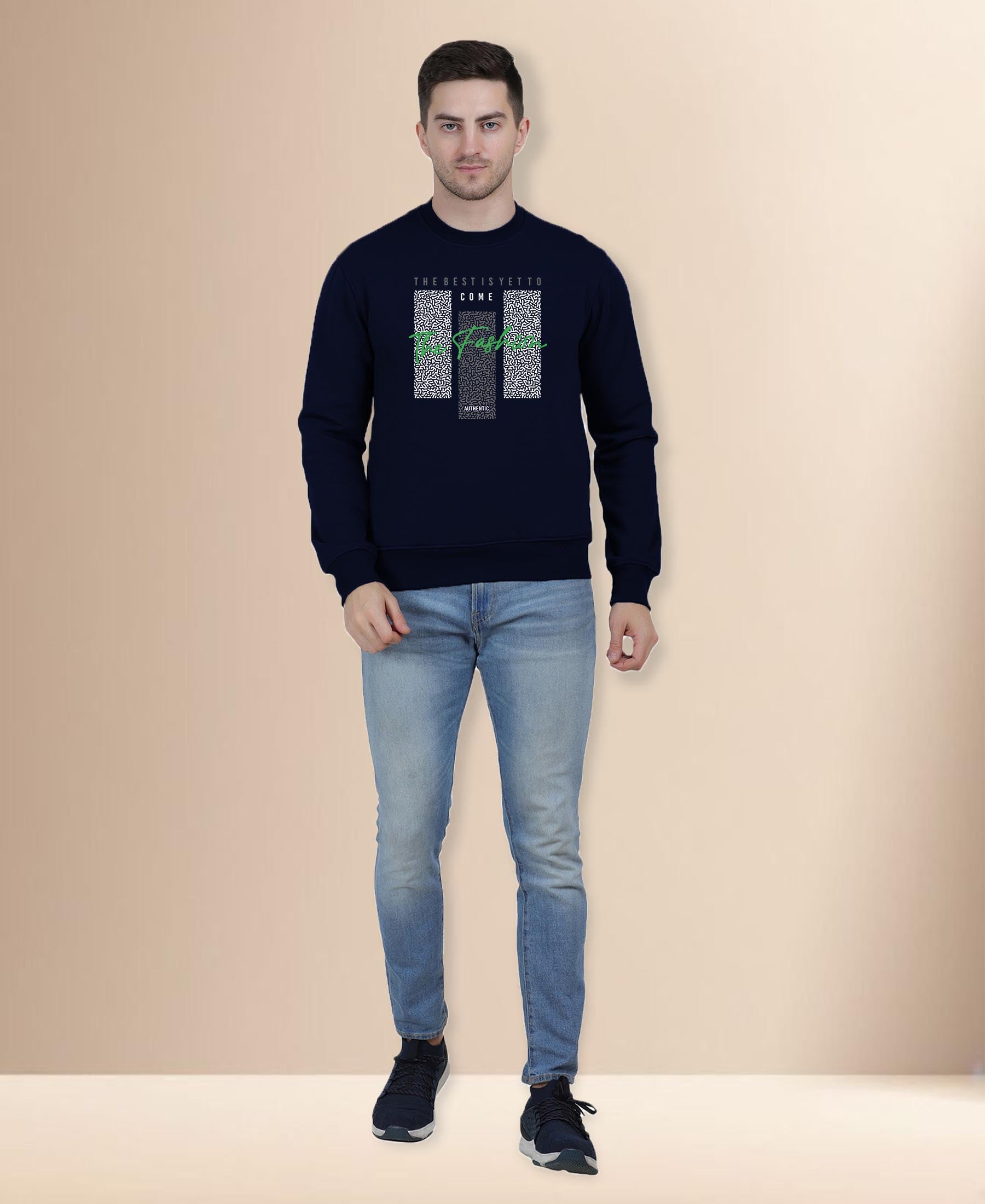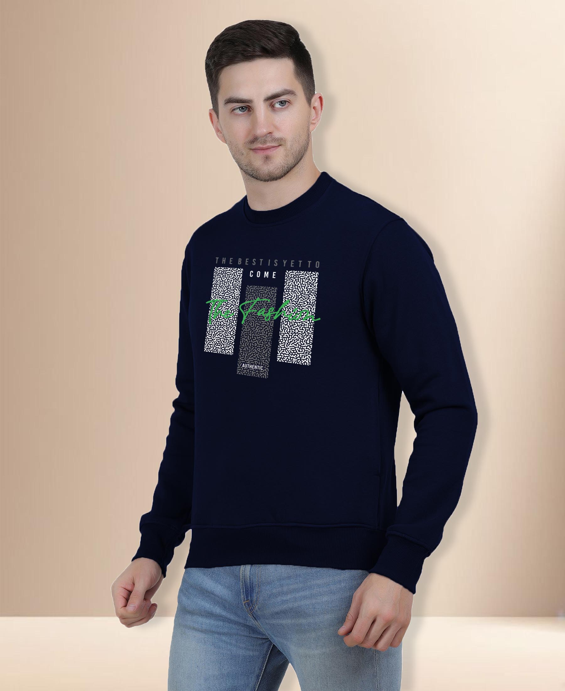 Hiflyers Men|Regular Fit|Chest Printed Cotton Fleece|Soft Stylish Casual Winter Wear Sweatshirt|Navy