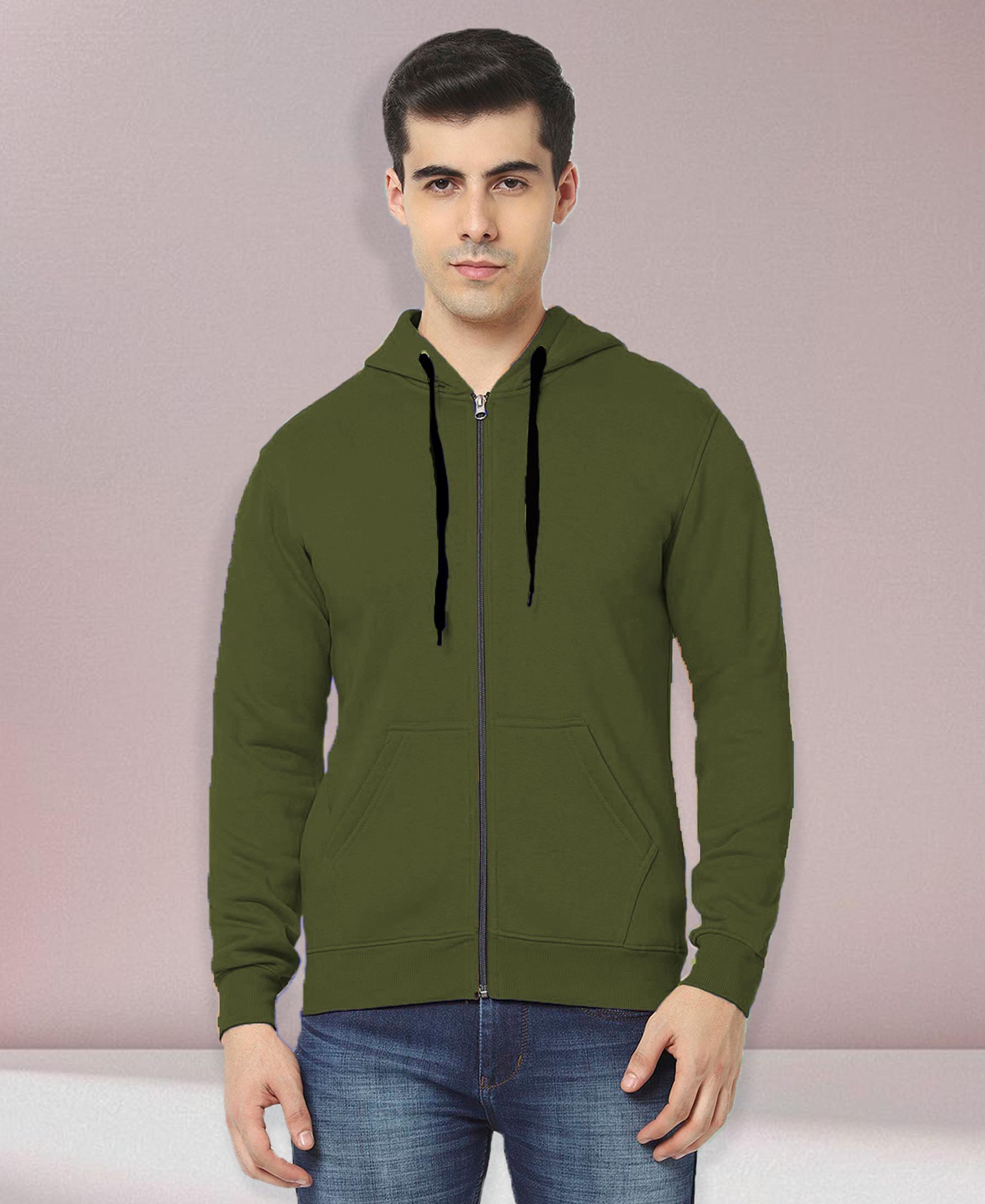 HiFlyers Men|Hooded Sweatshirt|Regular Fit|Cotton Blend Fleece|Full Zipper Winter Hoodie With Side Pockets|Full Sleeve Casual Wear|Olive