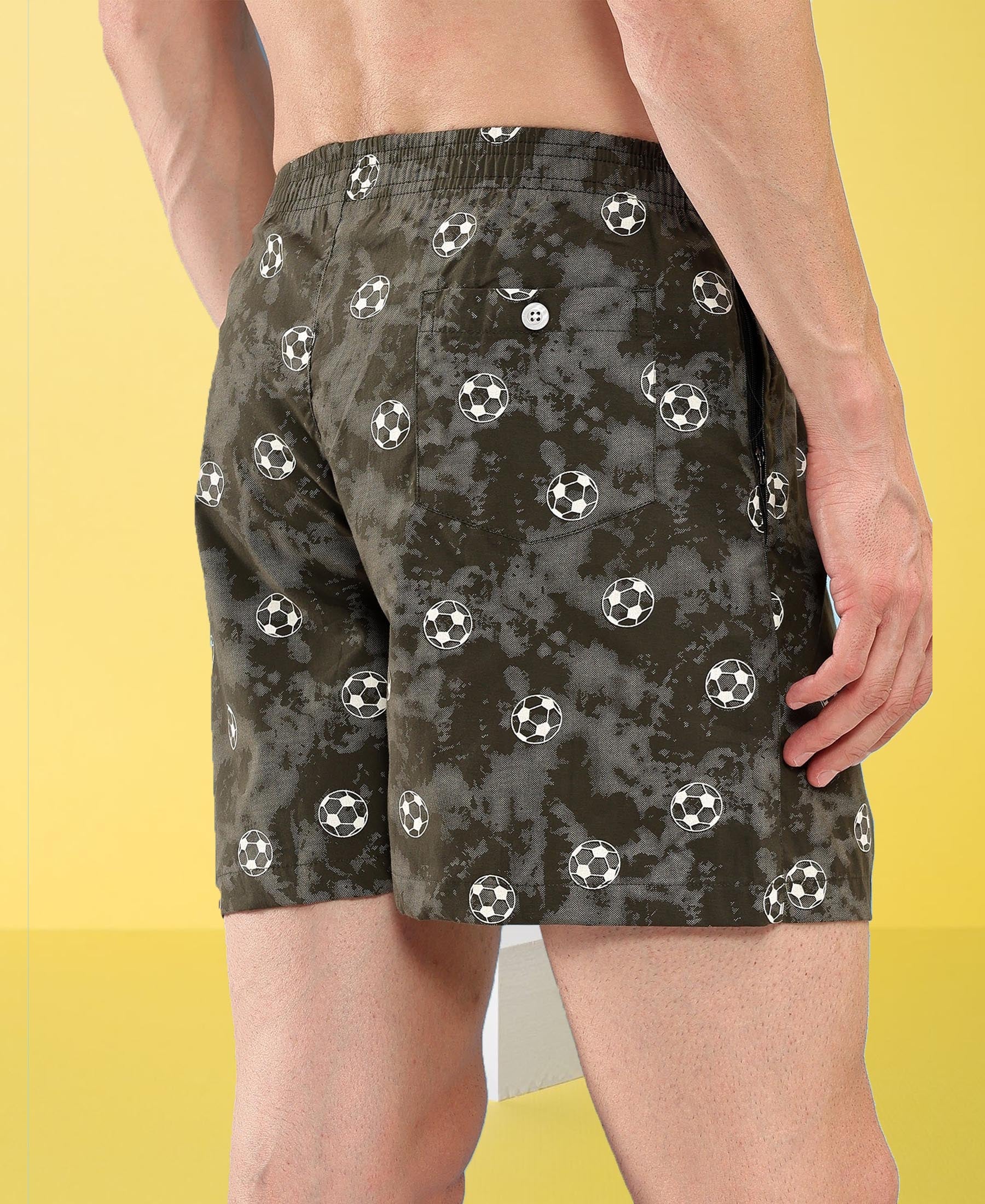 HiFlyers Men Regular Fit Printed Super Combed Cotton Woven Boxer Short Pack Of 1 Olive