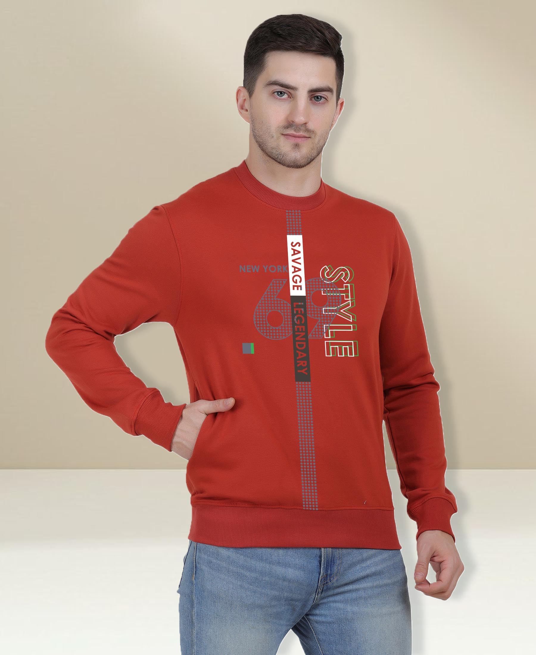 Hiflyers Men|Regular Fit|Chest Printed Cotton Fleece|Soft Stylish Casual Winter Wear Sweatshirt|Rust