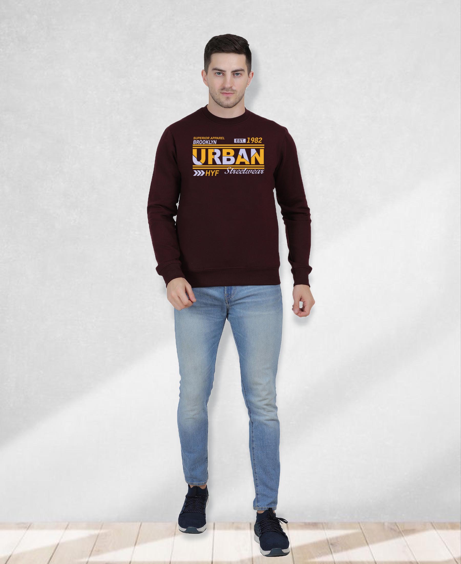 Hiflyers Men|Regular Fit|Chest Printed Cotton Fleece|Soft Stylish Casual Winter Wear Sweatshirt|Wine