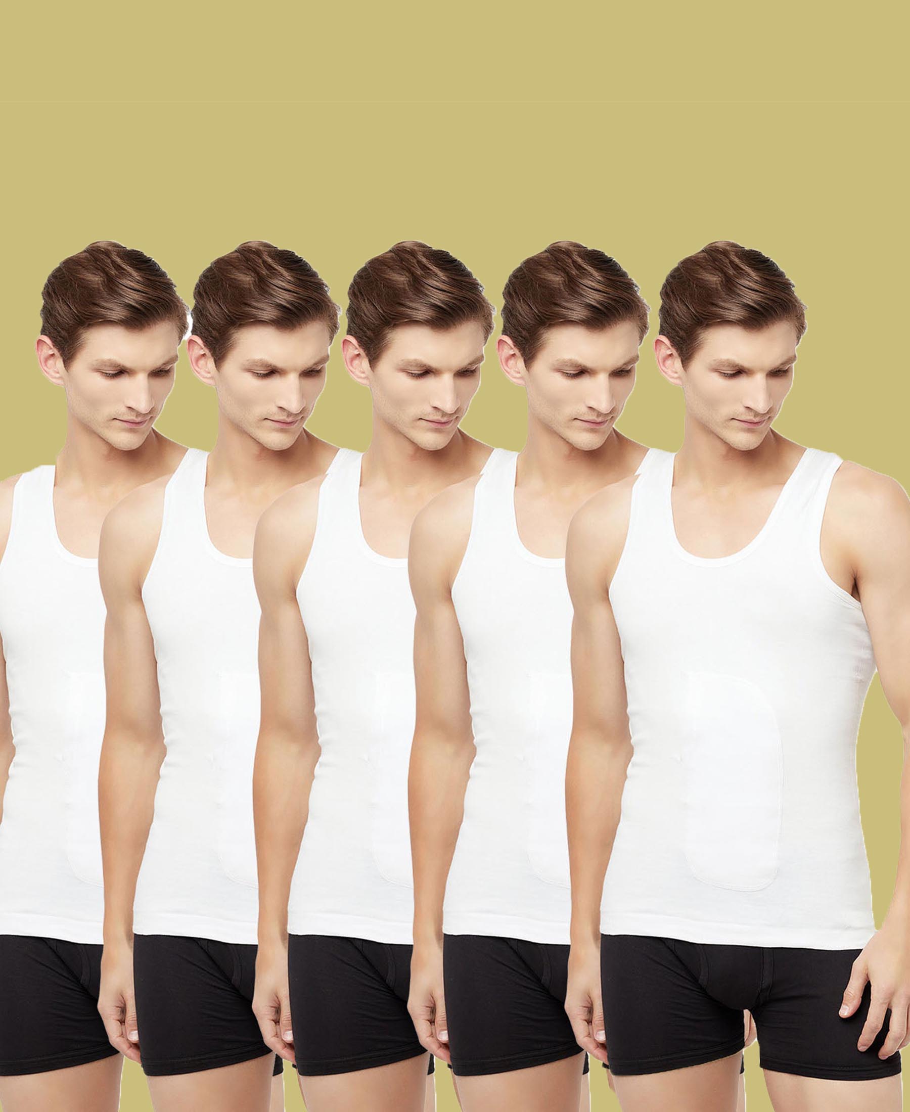 T.T. Men Interlock Sleeveless Vest With Pocket Pack Of 3 White