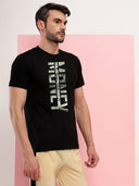 T.T. Men|Eco Friendly Recycled Fabric |Printed |Round Neck|Half Sleeves|Cotton Blended Tshirts For Men|Regular Fit|Black