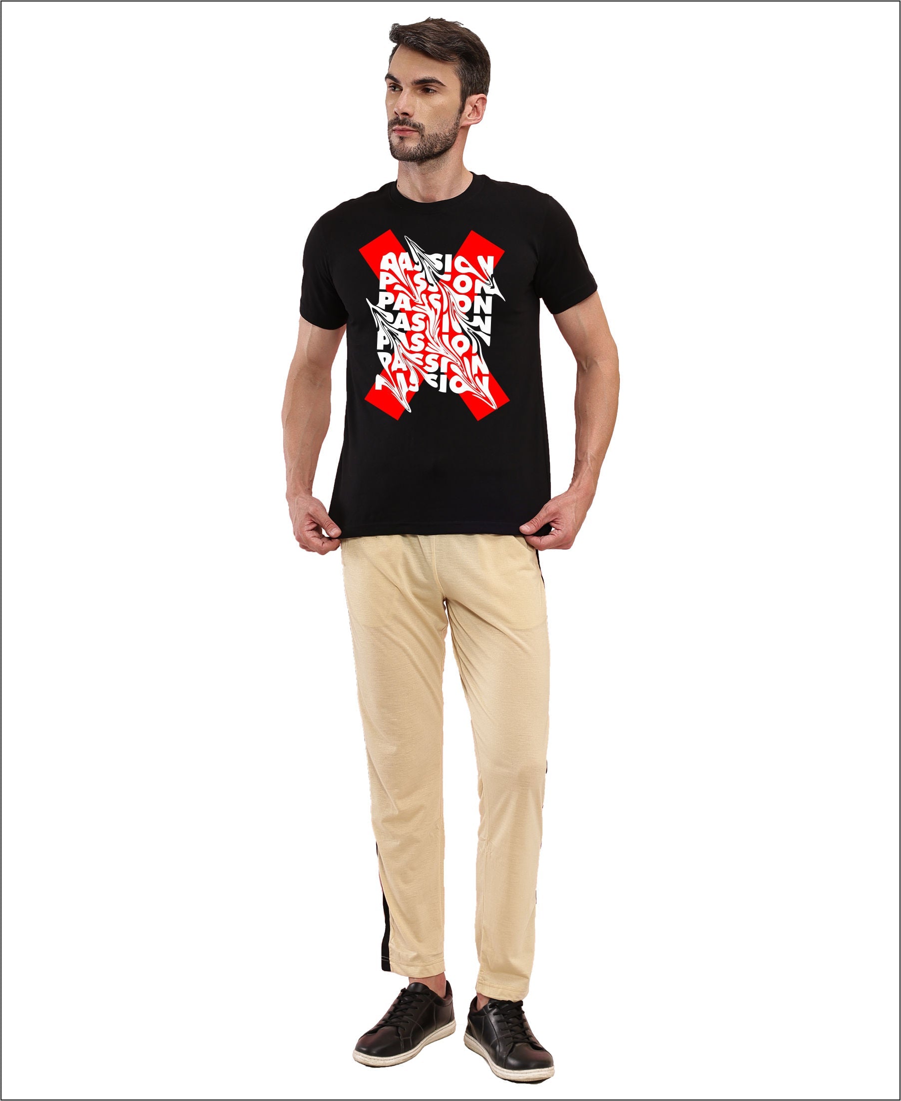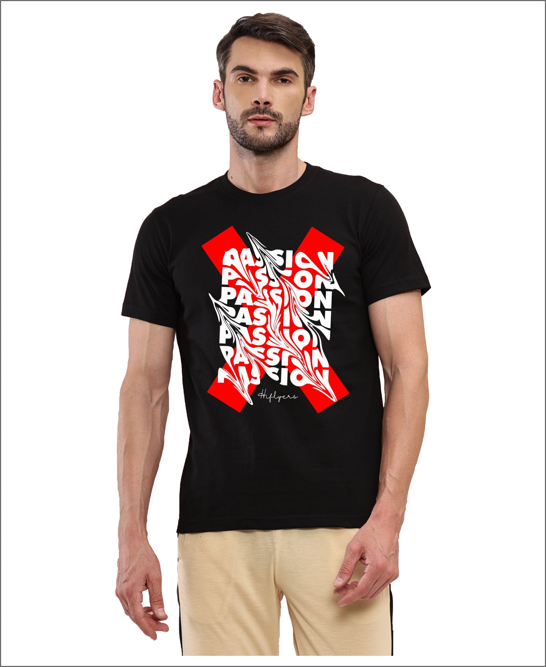 T.T. Men|Printed Tshirts For Men|Eco Friendly Recycled Fabric |Graphics Printed Tees|Round Neck|Half Sleeves|Cotton Blended Tees For Men|Regular Fit|Passion Print|Black