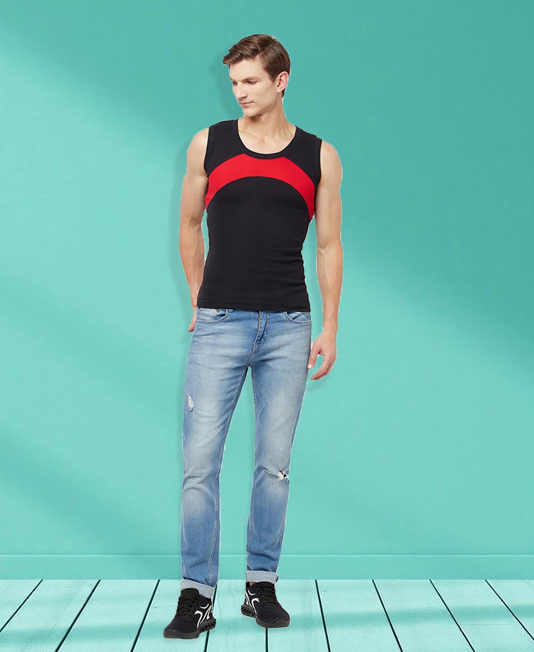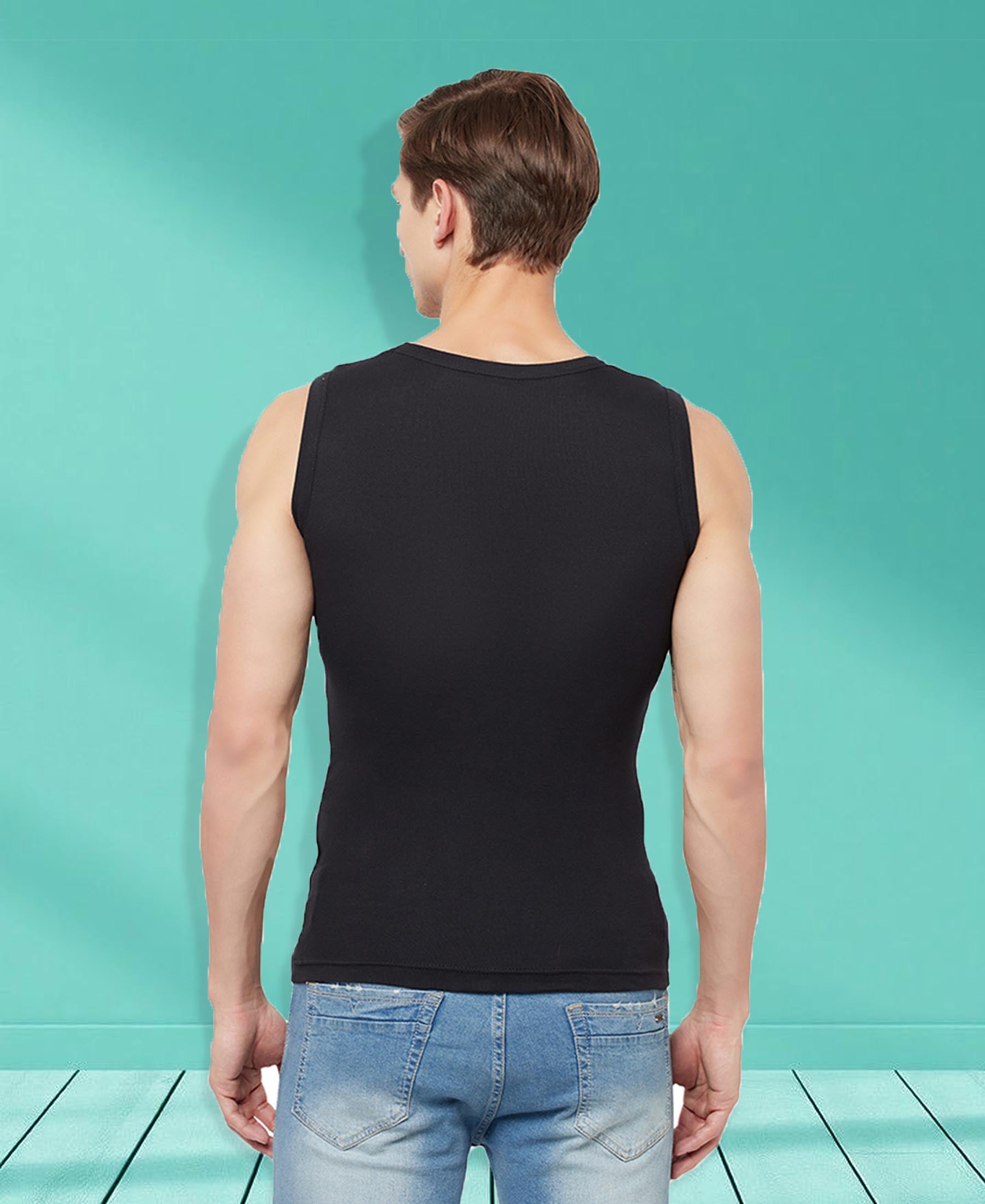 T.T. Men Designer Gym Vest Pack Of 3 Black-Red-Grey-Maroon-Navy-Sky