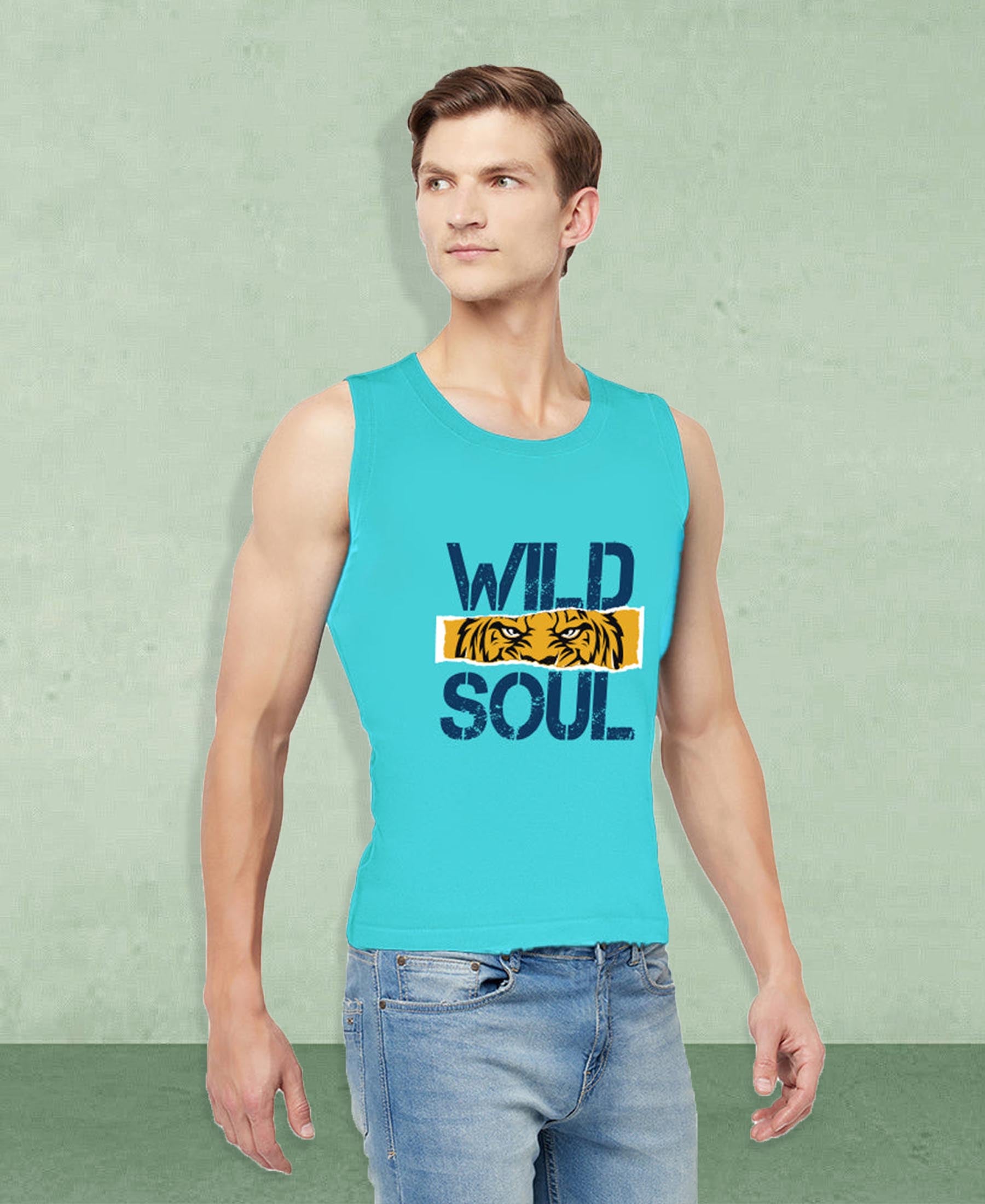 T.T. Men Cool Cotton Printed Regular Fit Round Neck Muscle Tees Pack Of 1 Blue