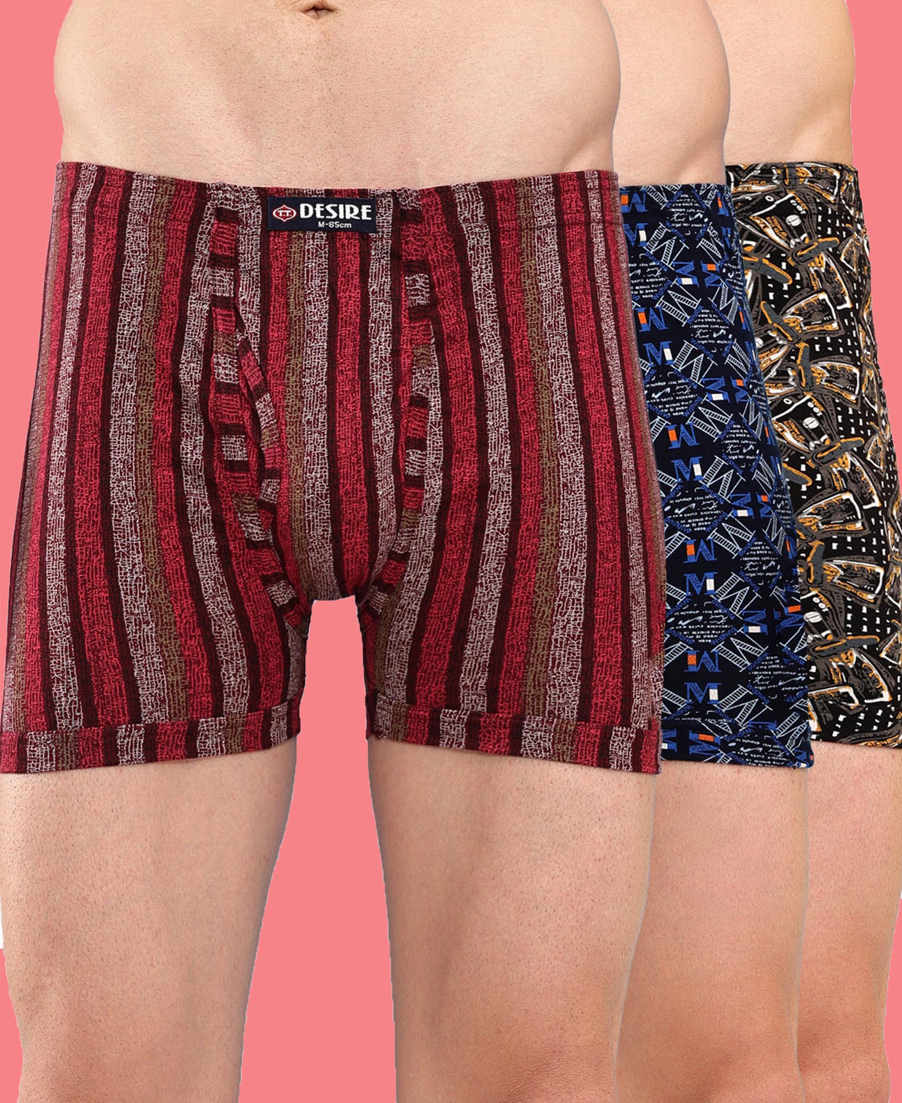 T.T. Men Desire Super Combed Cotton Printed Snug Fit Long Trunks For Men Pack Of 3 D.Brown-Navy-Maroon
