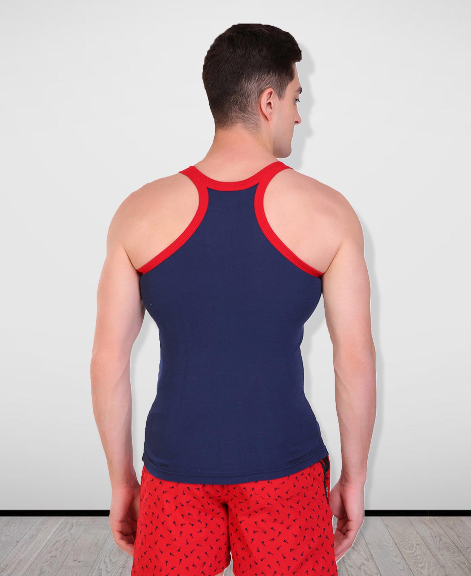 T.T. Men Designer Gym Vest Pack Of 2 Black-Olive -Blue-Red