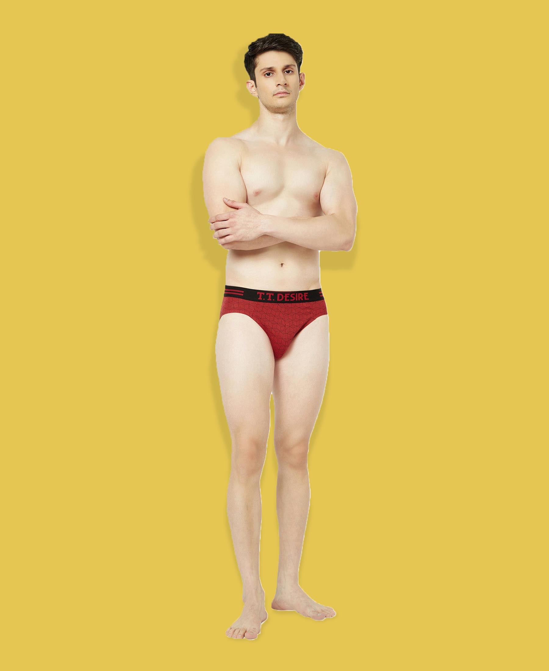 T.T. Mens Desire 100% Combed Cotton Printed Brief Top Elastic Pack Of 2 Red-Maroon