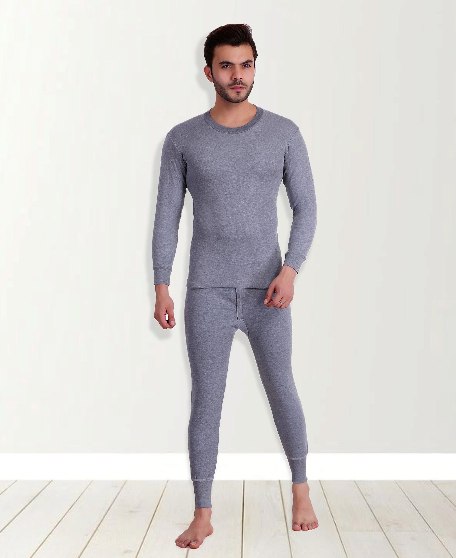 T.T. Mens Grey Slim Fit Solid Titanic Thermal Set