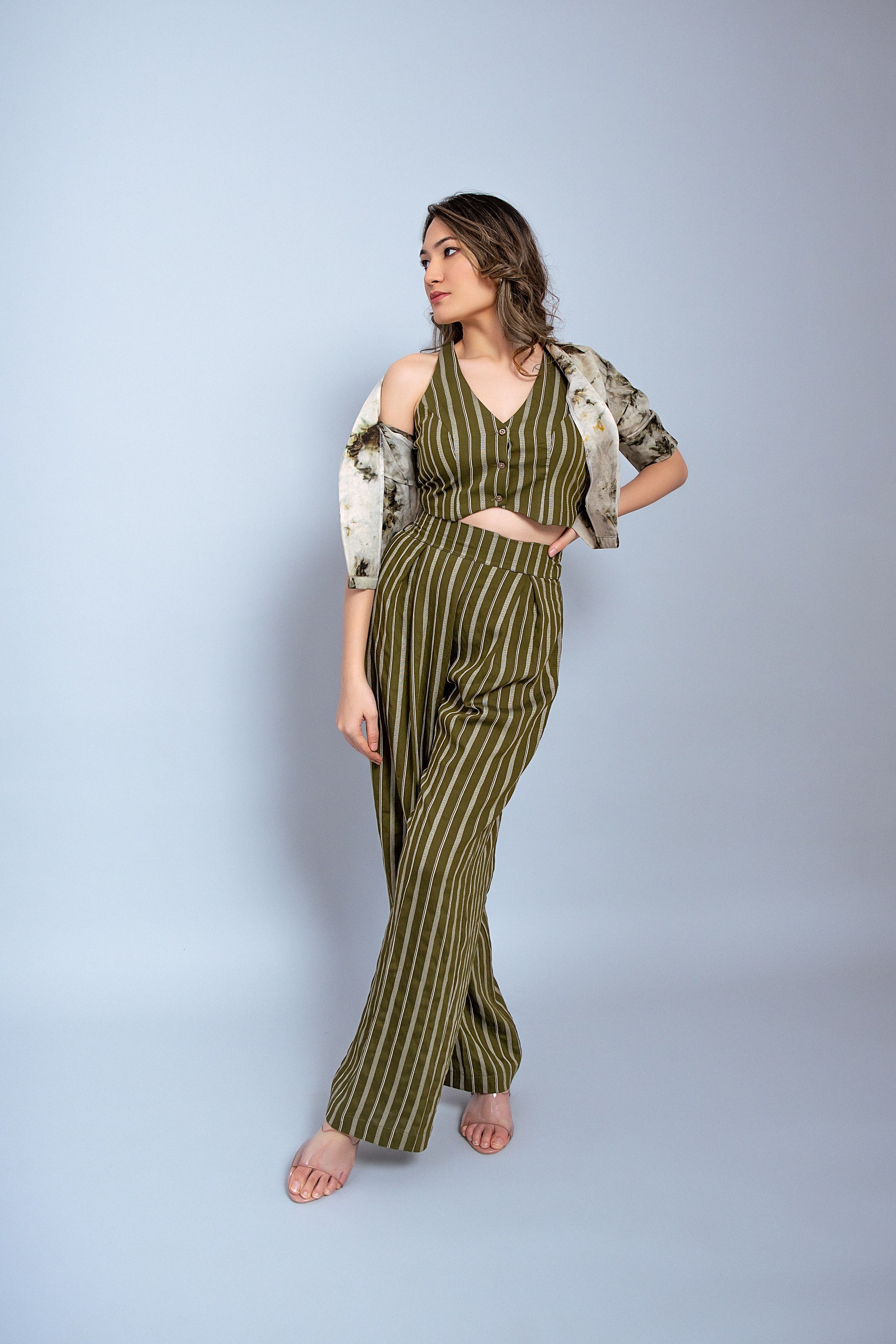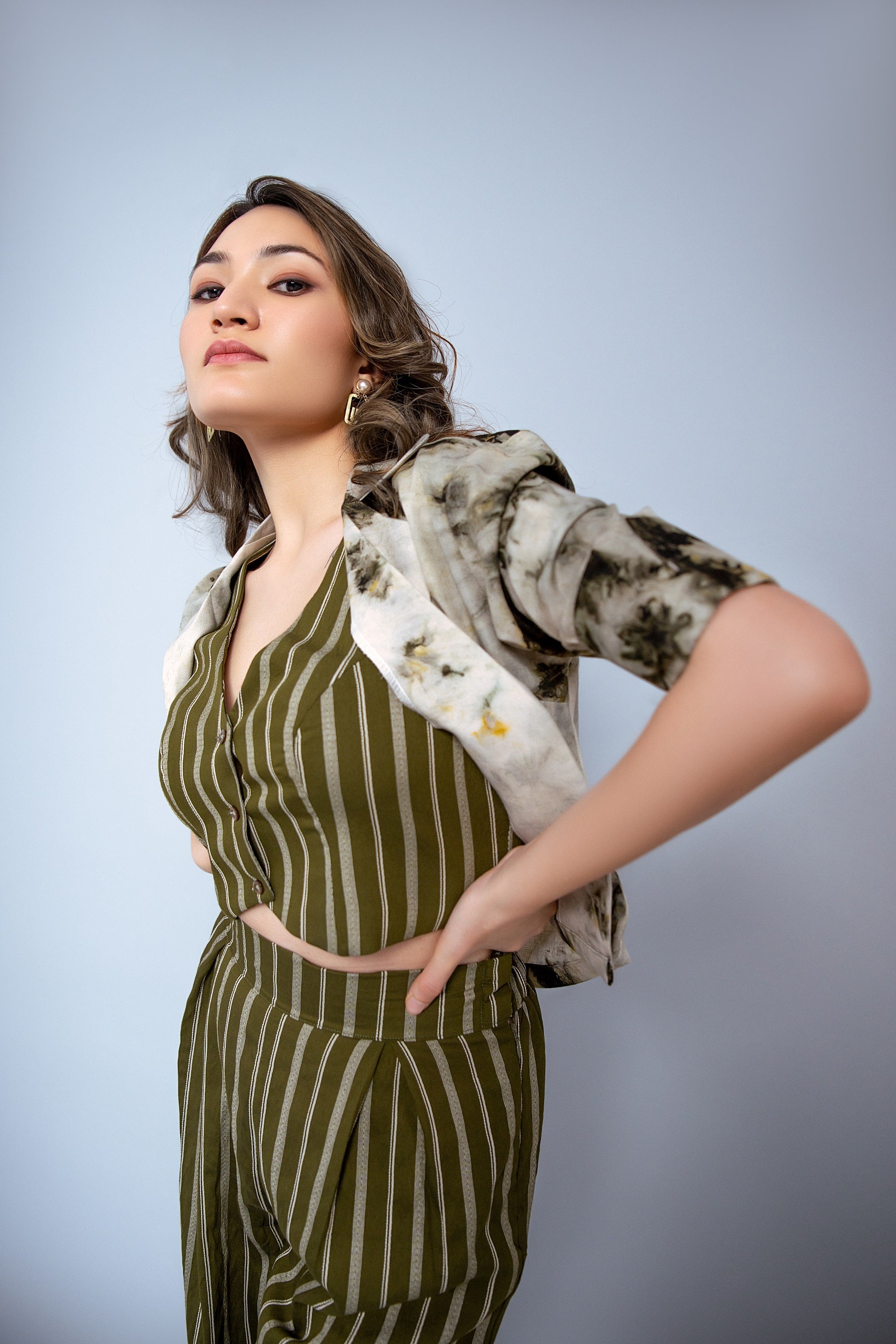 Step into the spotlight with our Tie Dye with Stripe 3 Piece Set. Featuring a mesmerizing blend of heena and green hues, this set exudes bohemian charm and free-spirited style. The tie-dye pattern adds a playful touch, while the striped details offer a modern twist. Perfect for festivals, beach days, or casual outings, this set is a must-have for the fashion-forward individual. Embrace your inner wanderer and let your unique style shine with this eclectic ensemble.