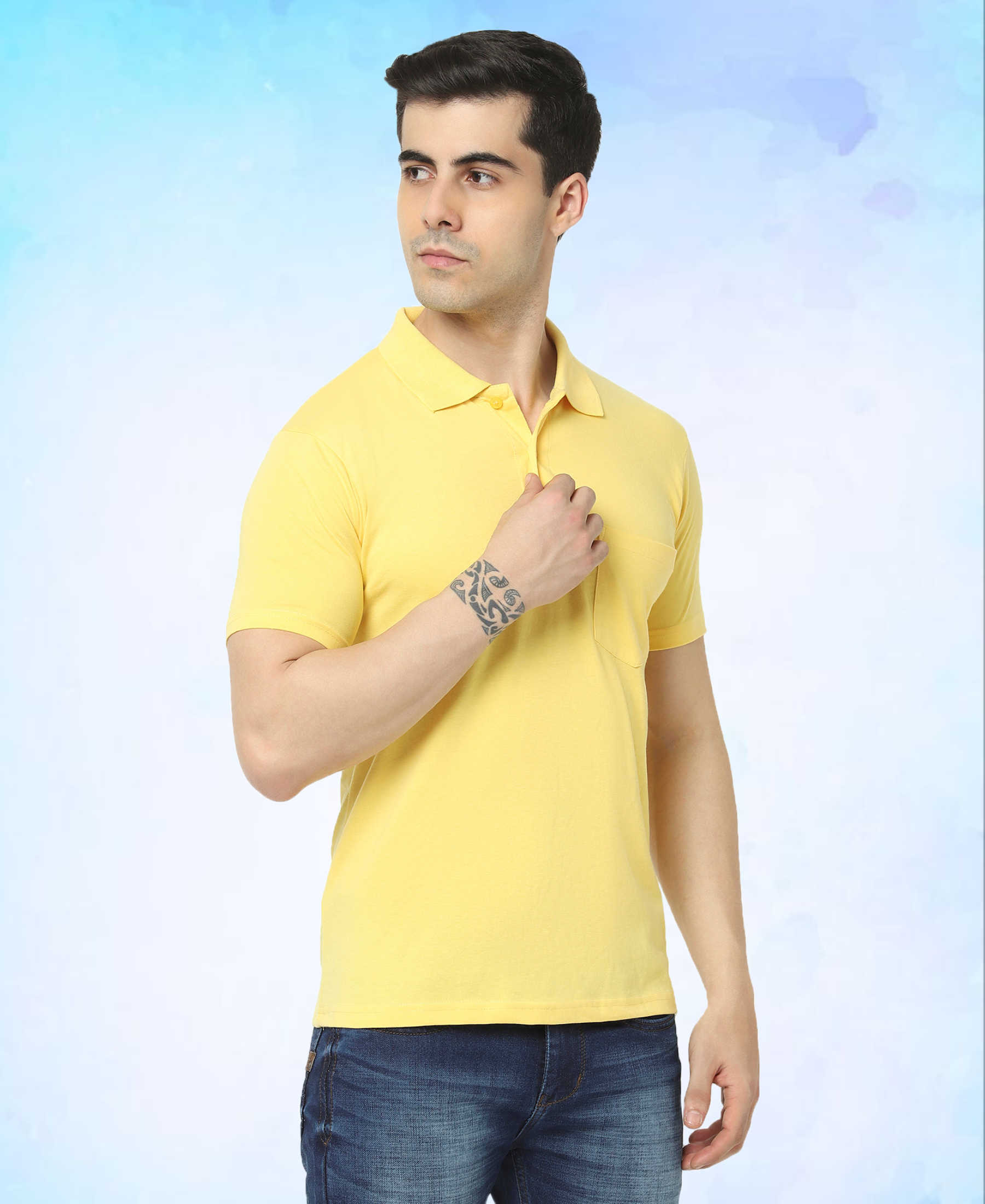T.T. Men'S Solid Sinker Polo Tshirts With Pocket Yellow