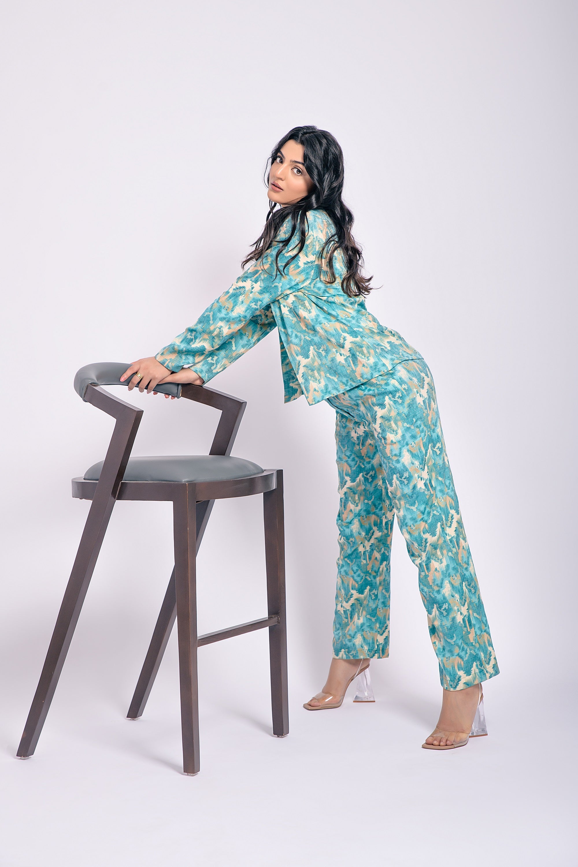 Garden Party Turquoise Printed 3 Piece Co Ord Set (Combo)
