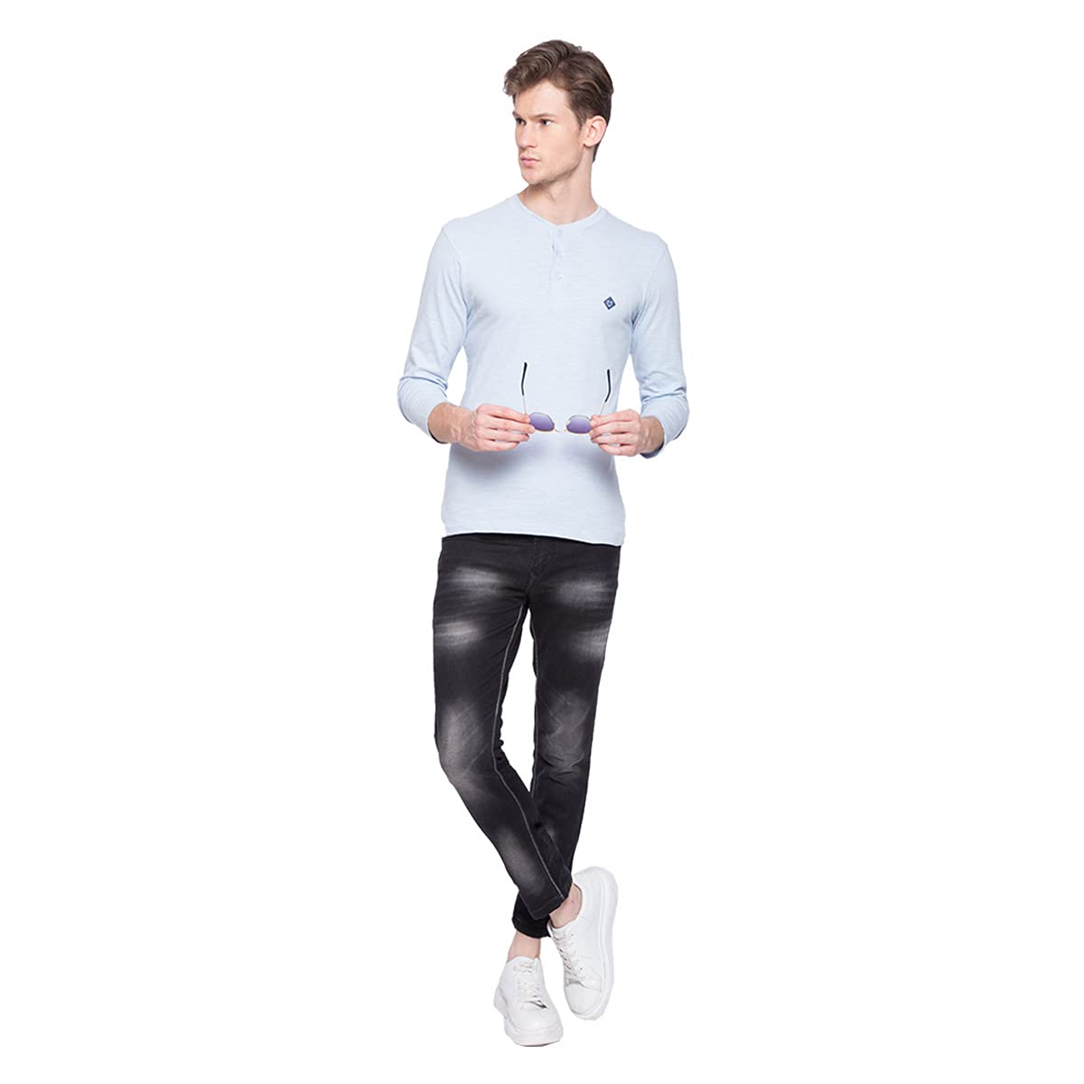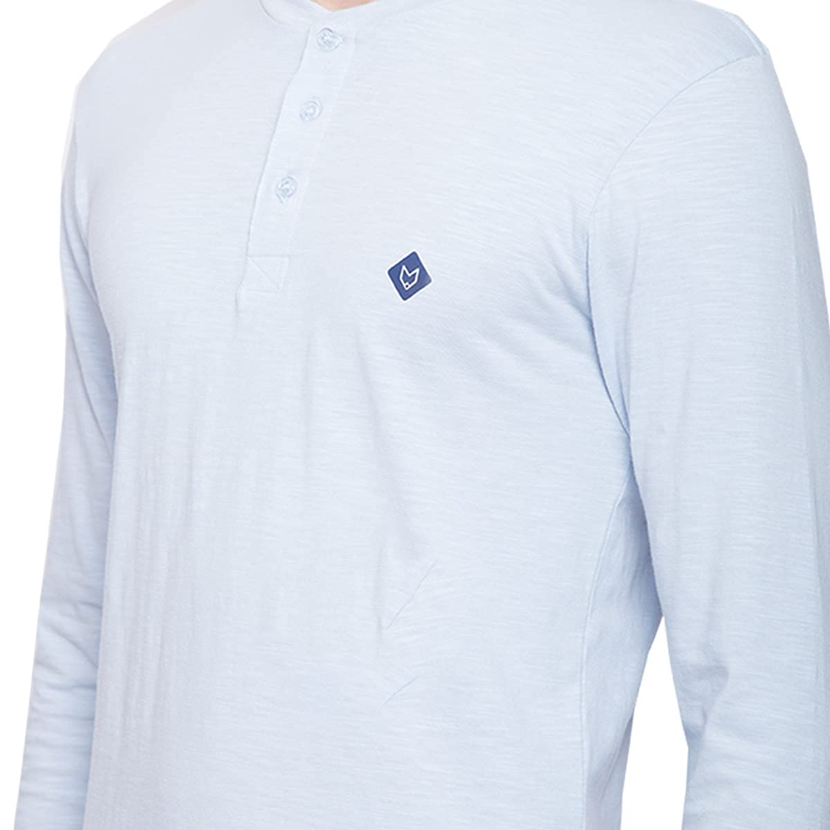 Almo Men Cotton Slub Henley T-Shirt | Full Sleeve | Lightweight & Breathable | Regular Fit Casual T-Shirt for Men-Light Blue