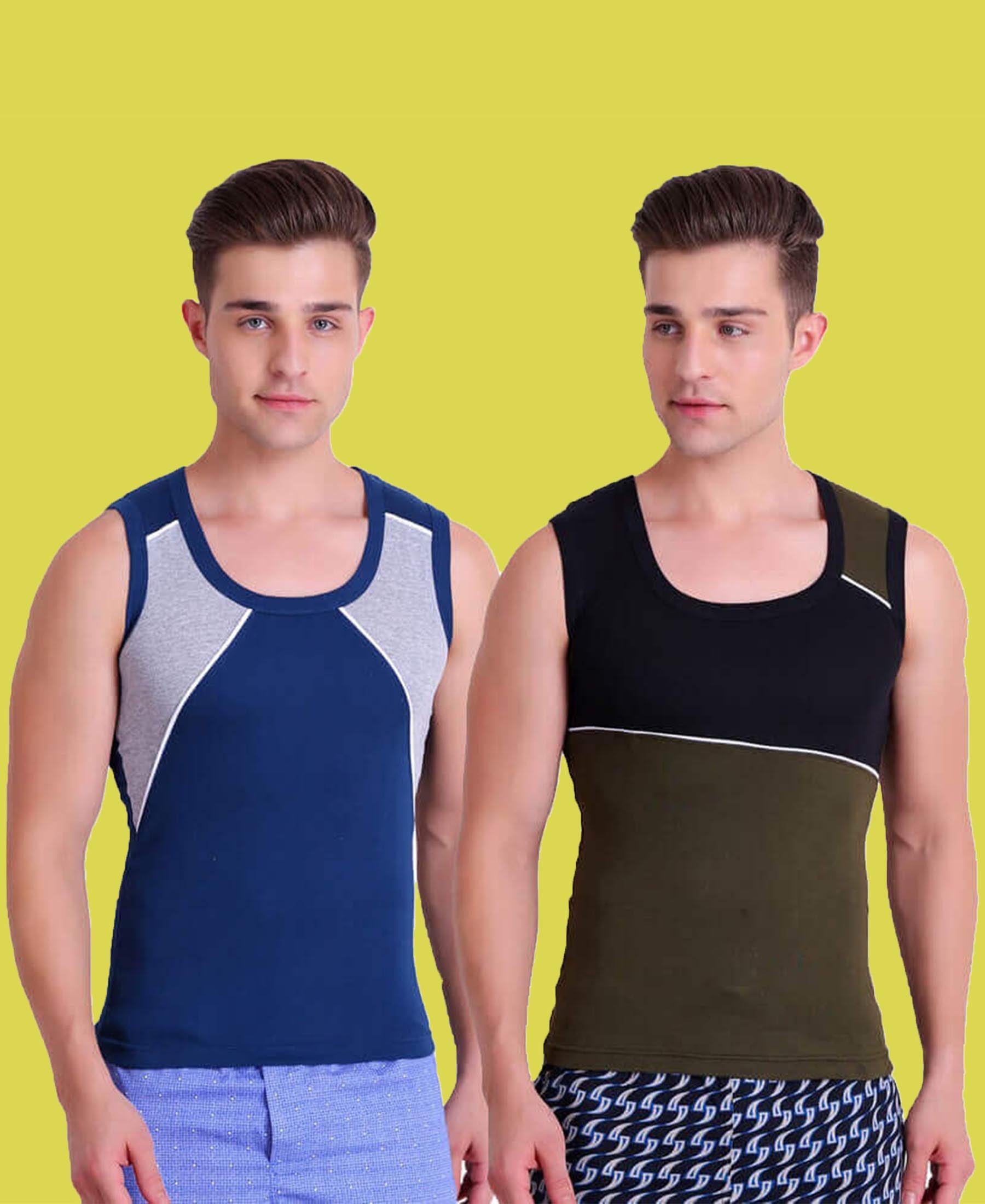 T.T. Men Titanic Designer Gym Vest Pack Of 2 (Blue - Grey)