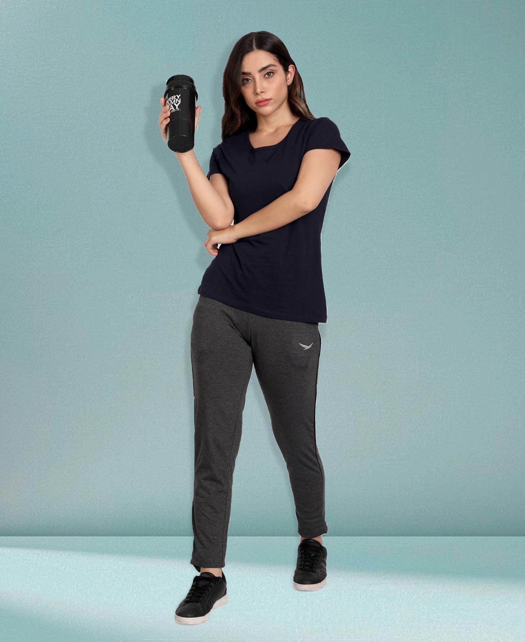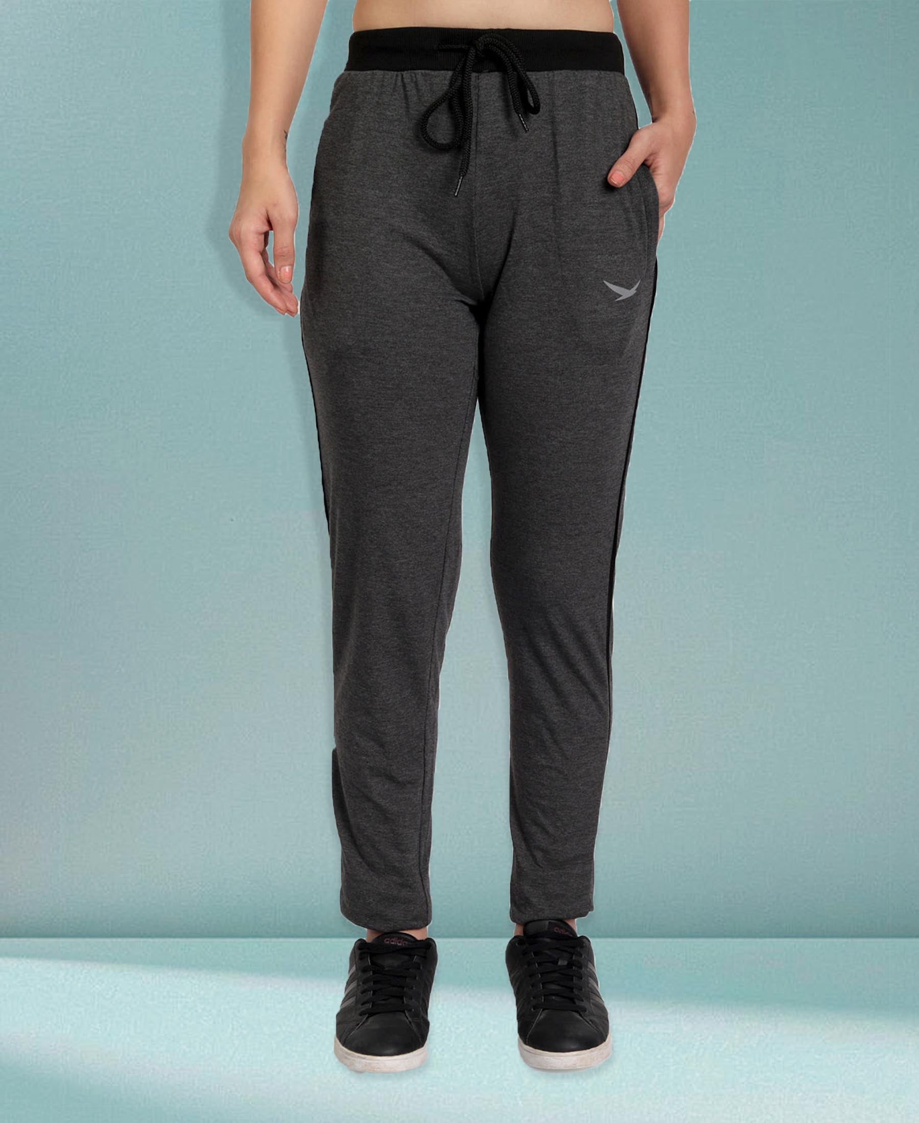 HiFlyers Women Comfort Fit Anthra Melange Cotton Track Pants