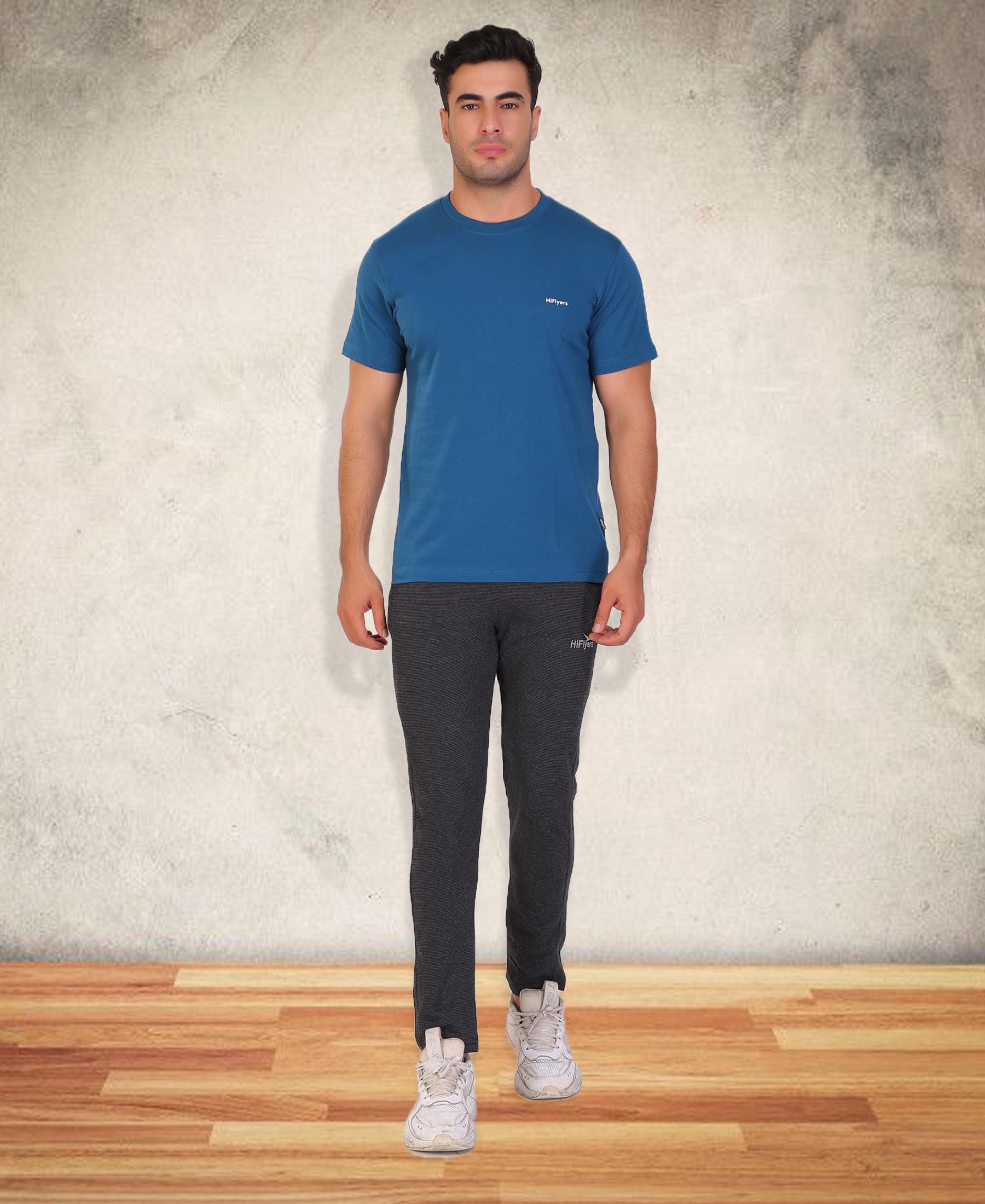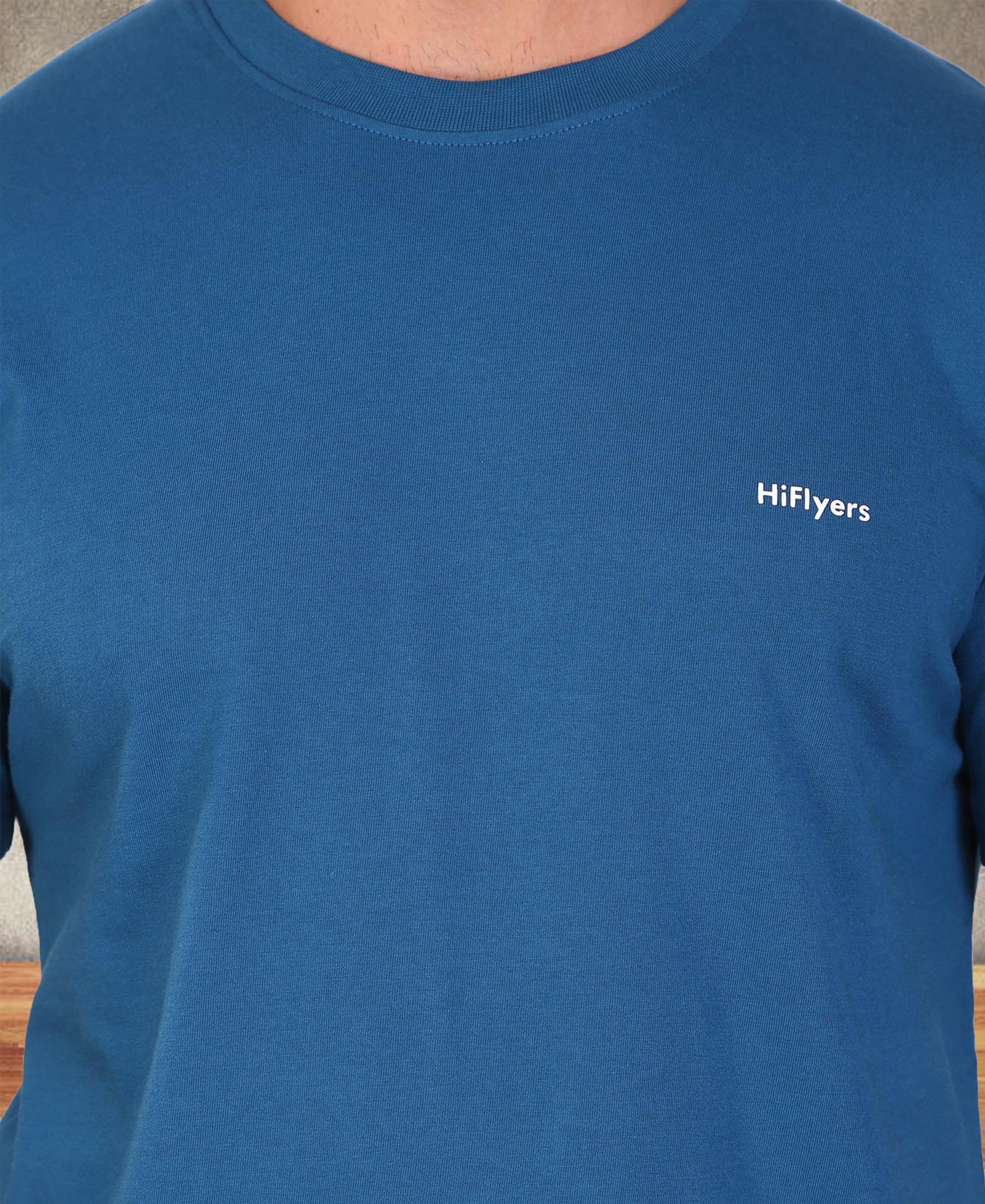 HiFlyers Men Slim Fit Solid Premium Rn Tshirts Deep Atlantic