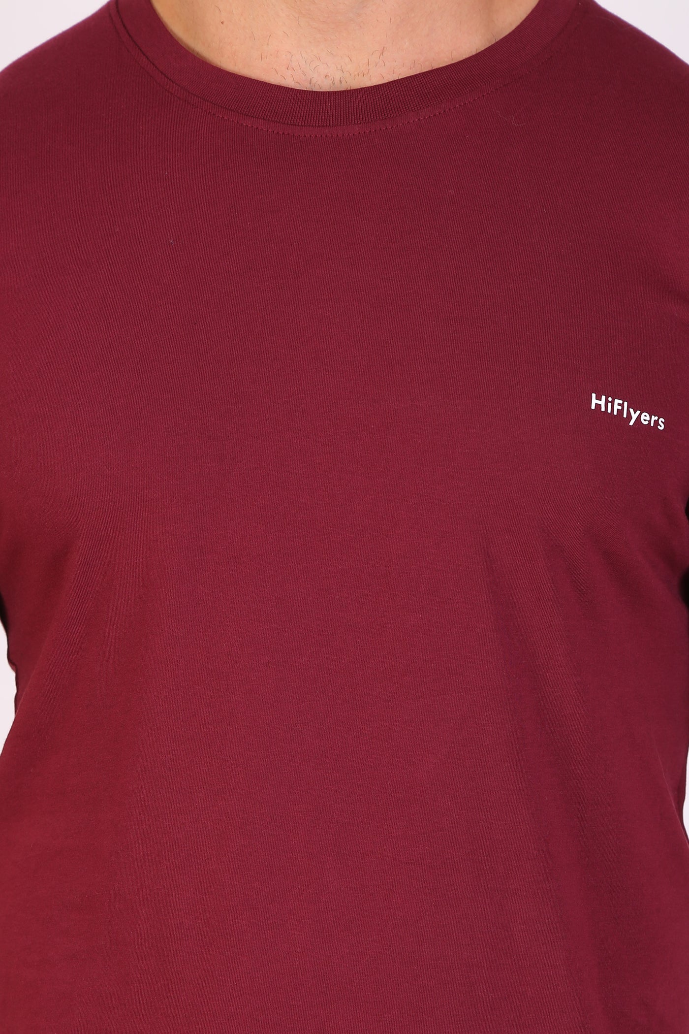 HiFlyers Men Slim Fit Solid Premium Rn Tshirts Maroon