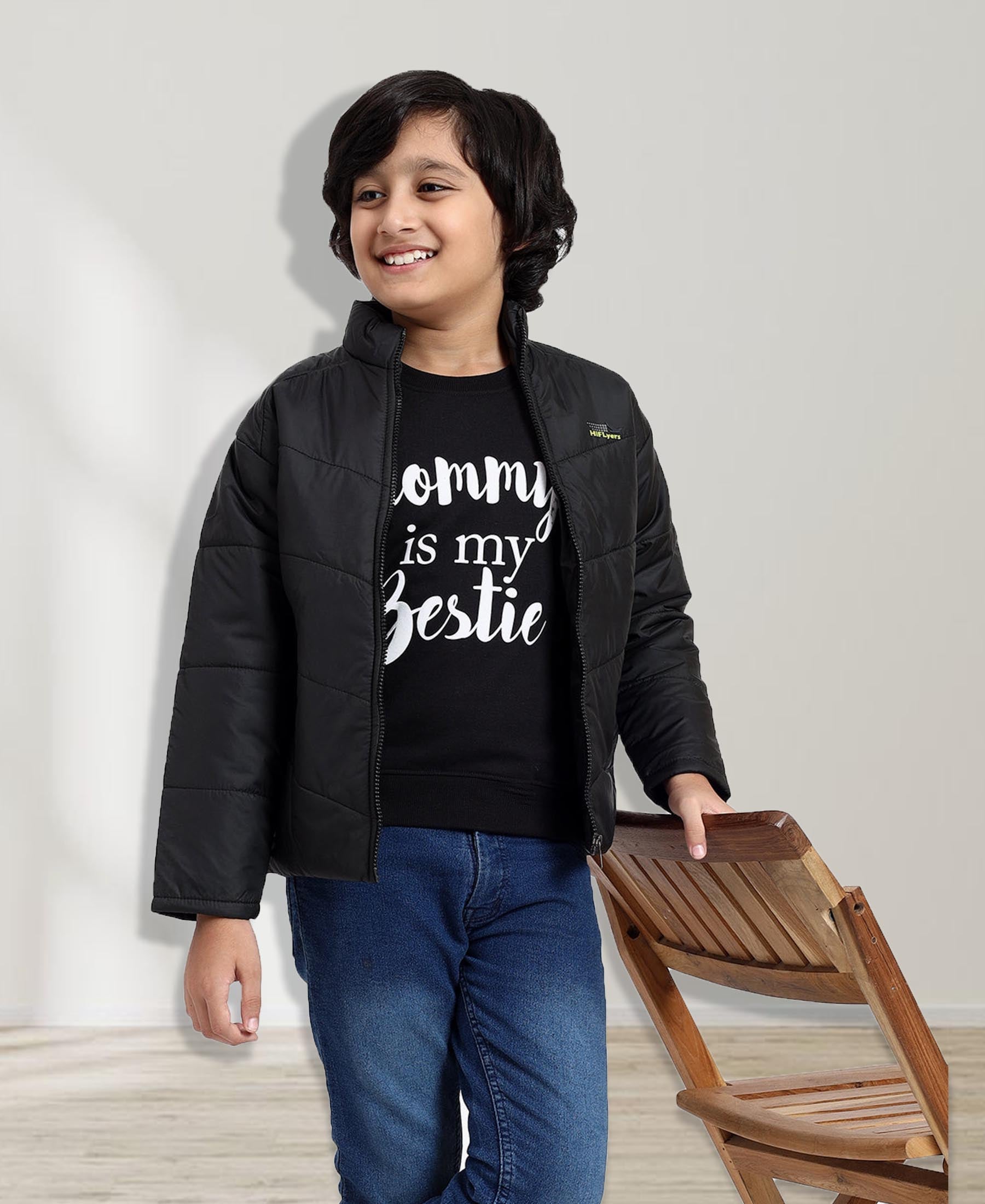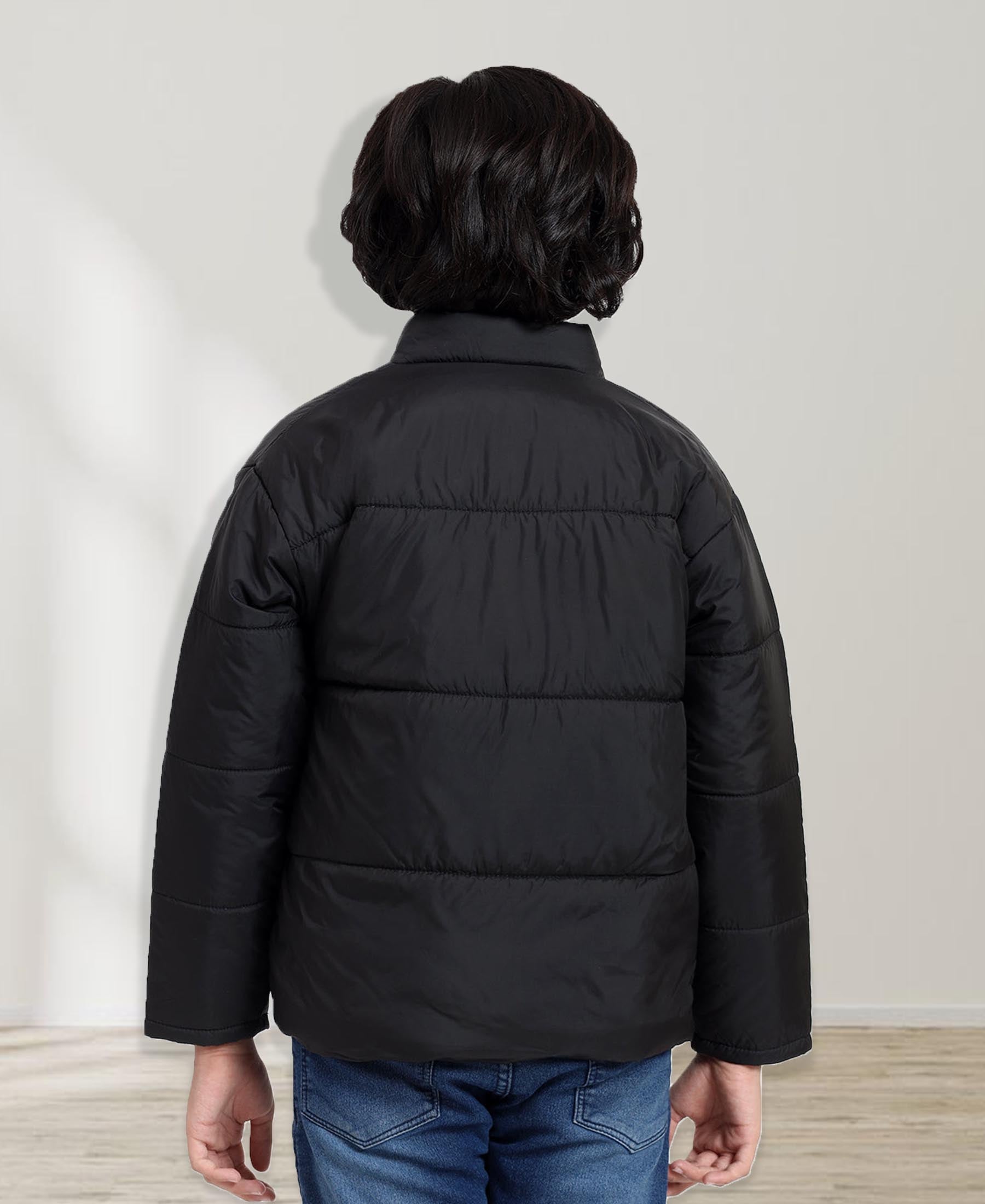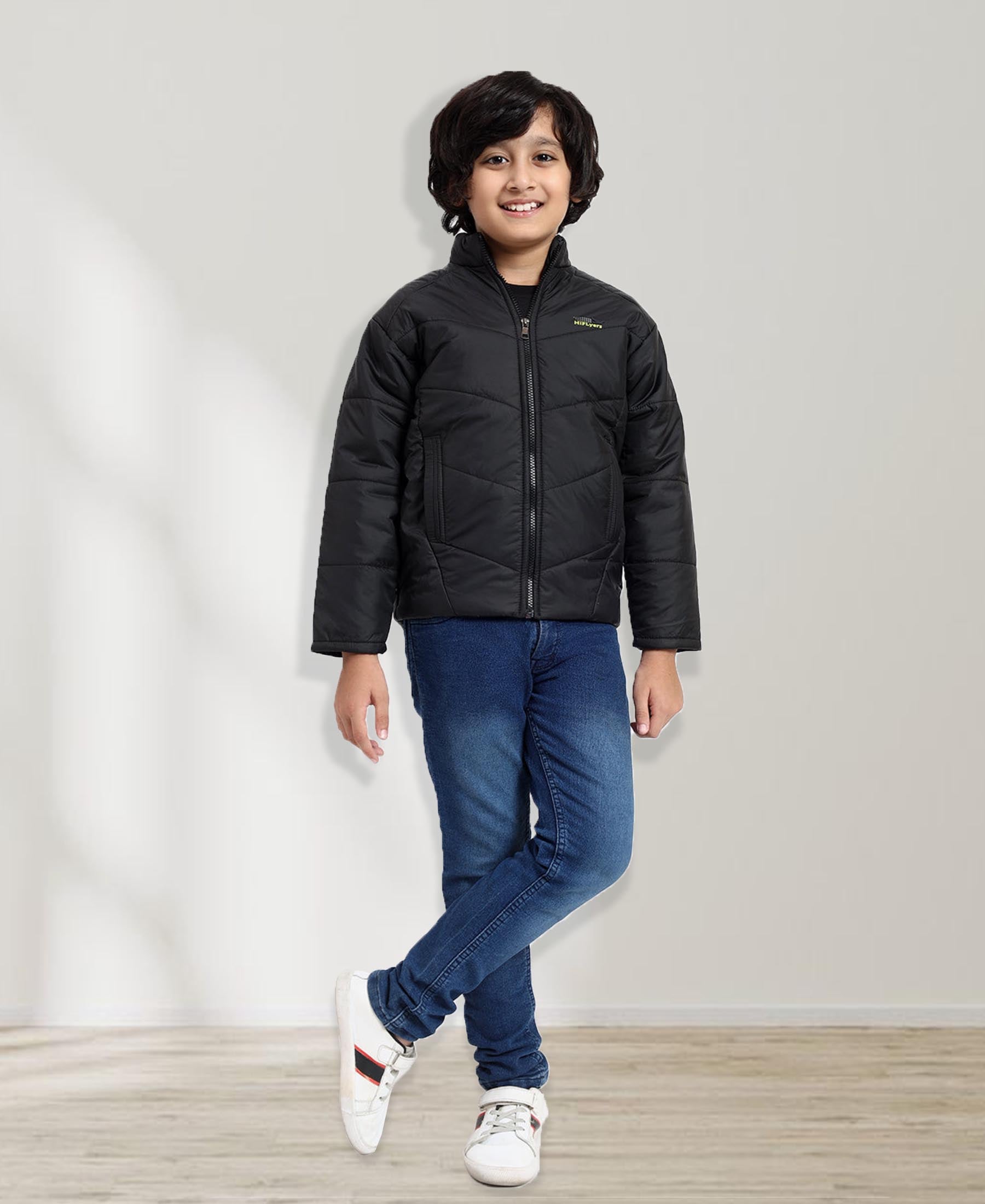 HiFlyers Boys Regular Fit | Polyster |Fluffy Full Sleeves |Quilted Insulation|High Neck Stand Collar|Zipper Jacket -Black