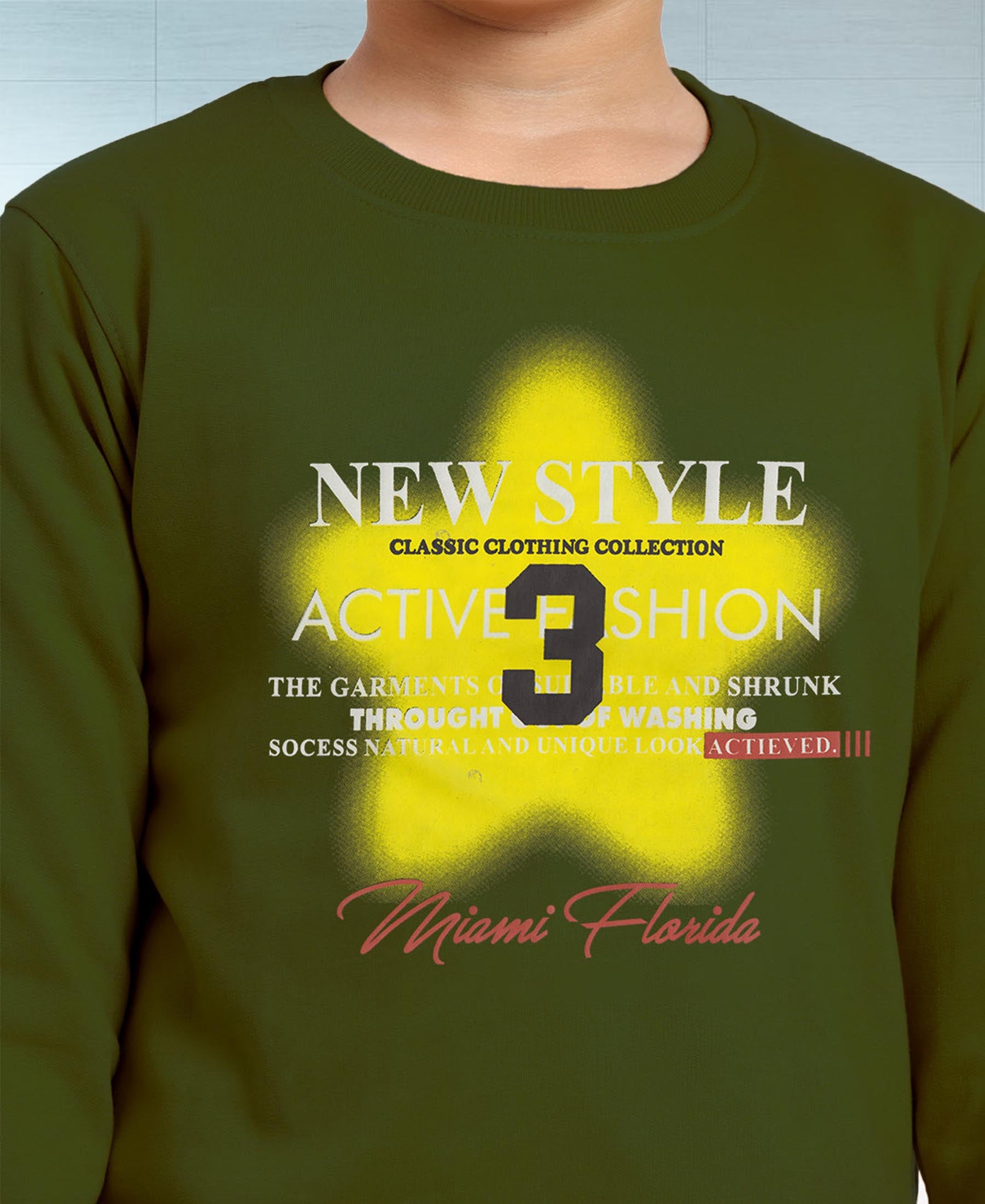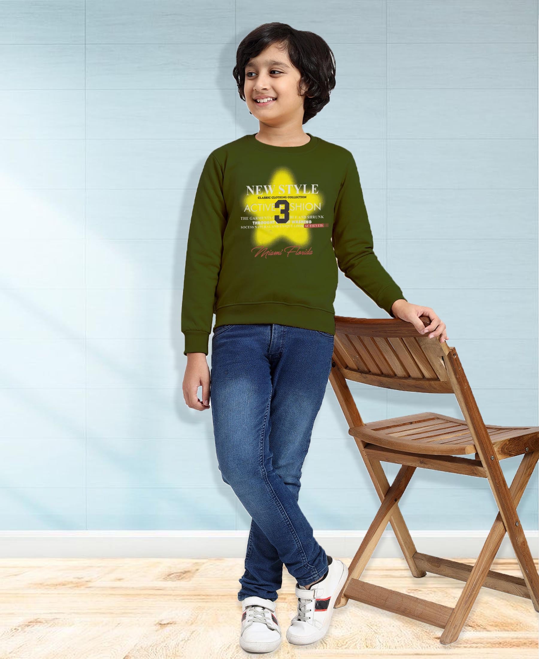 HiFlyers Boys Regular Fit | Premium Cotton Fleece |Full Sleeves|Round Neck|Trendy Winter Wear| Sweatshirts For Boys And Girls -Olive