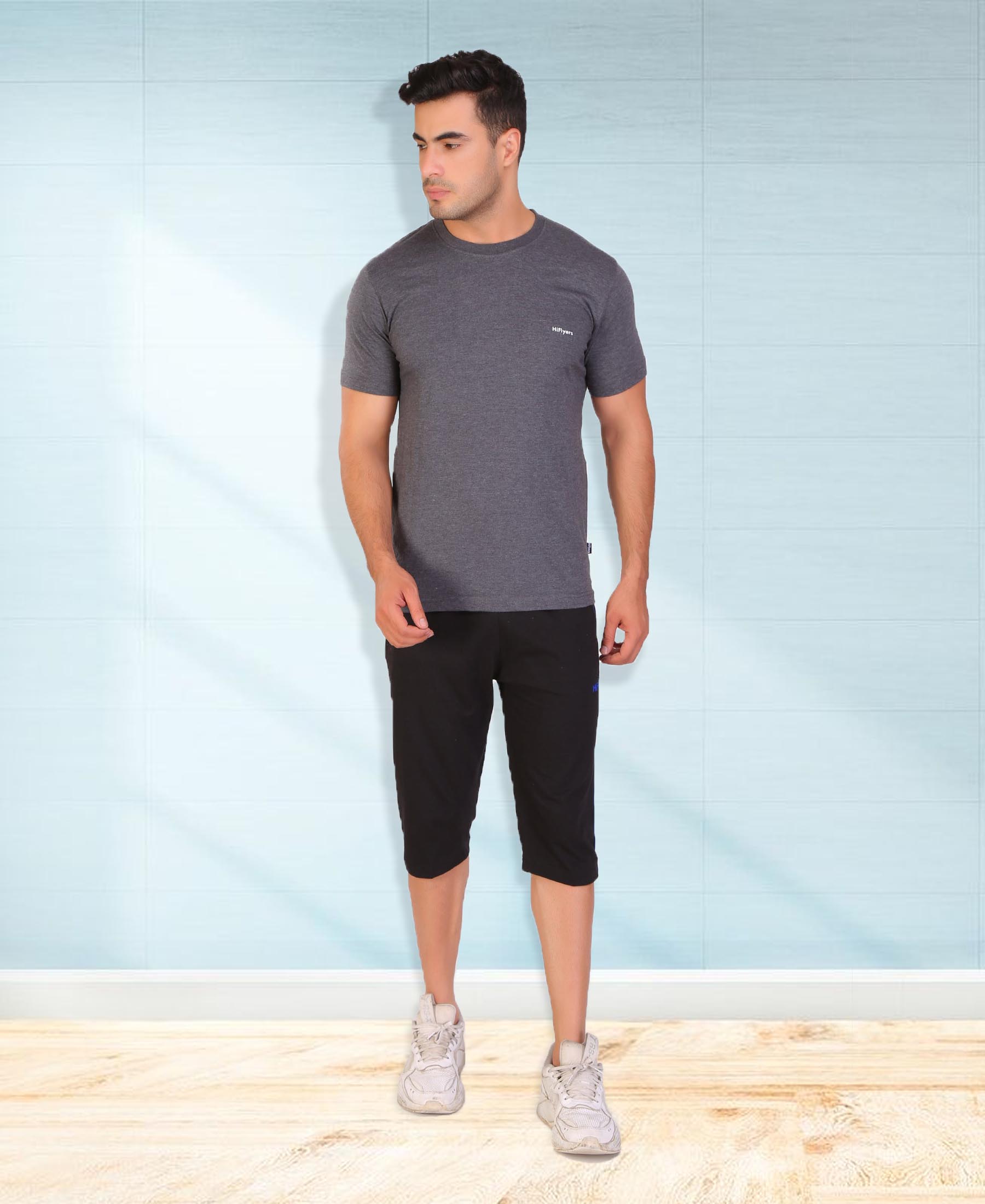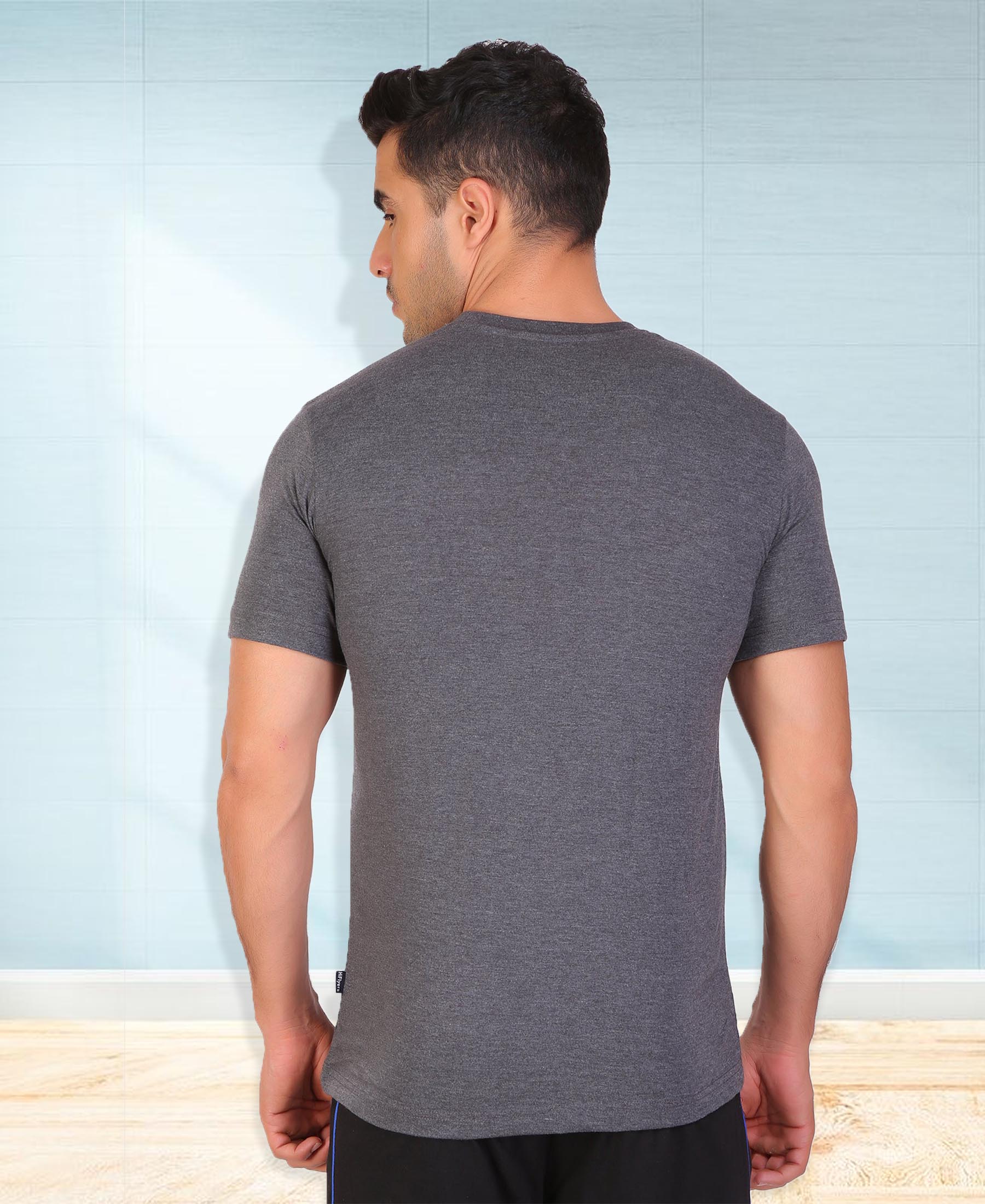 HiFlyers Men Slim Fit Self-Design Premium Melange Rn Tshirts Anthra