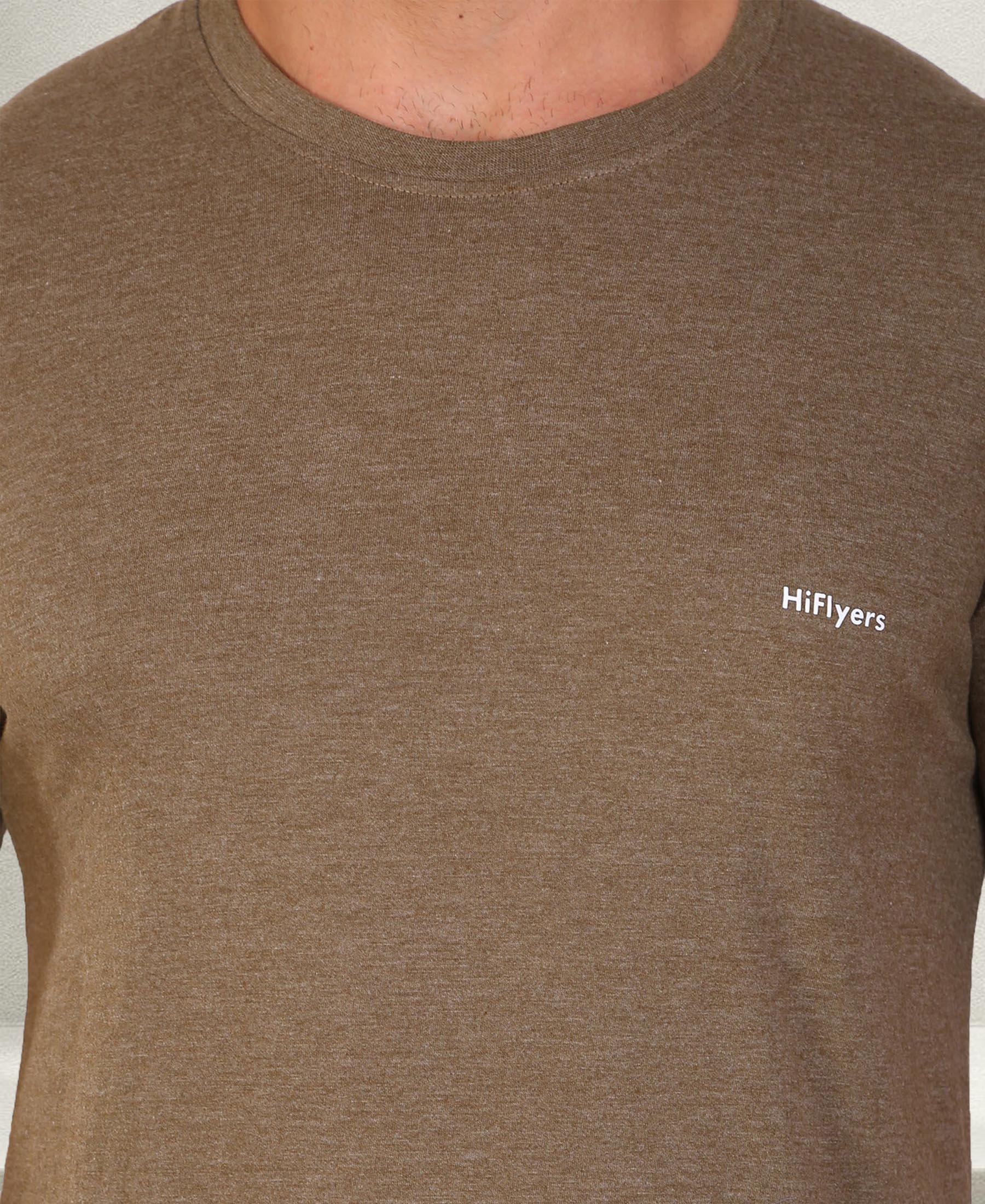 HiFlyers Men Slim Fit Self-Design Premium Melange Rn Tshirts Olive