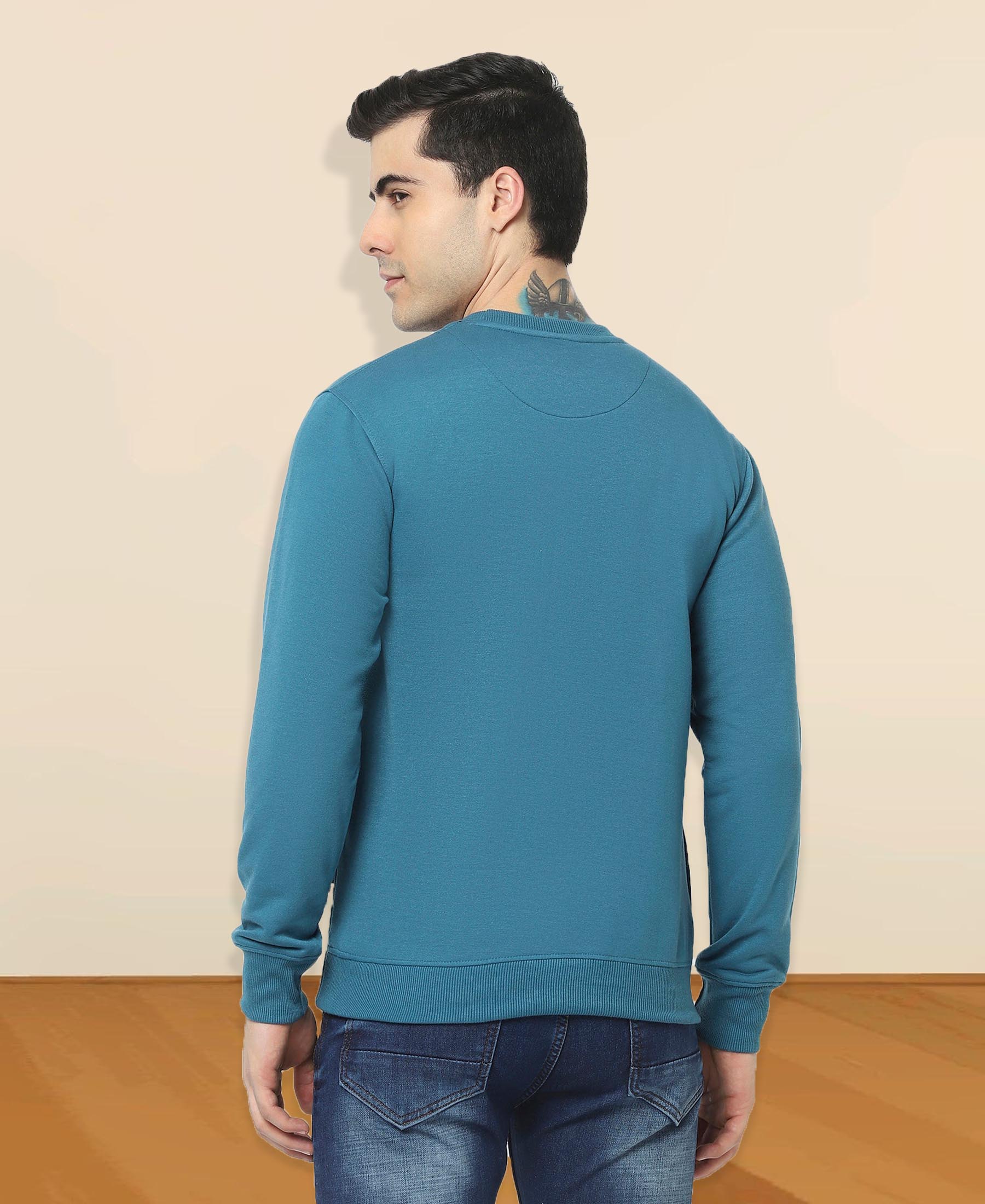 HiFlyers Men Slim Fit Slogan Printed Cotton Fleece Sweatshirt -Airforce