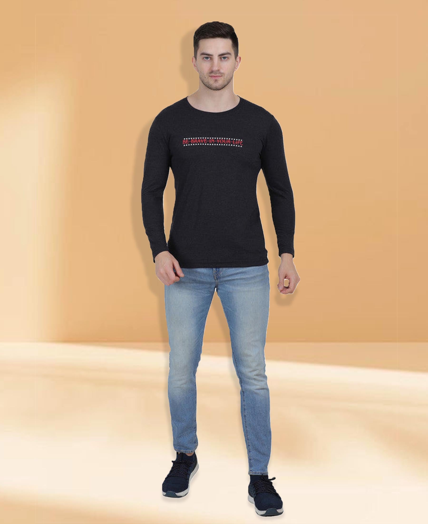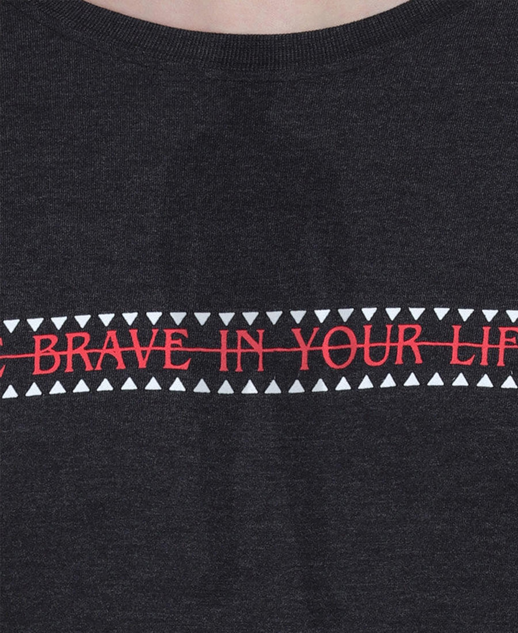 HiFlyers Men Anthra Regular Fit Printed Round Neck T-Shirt