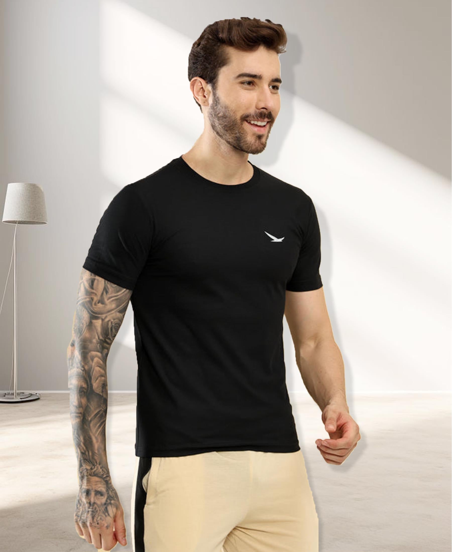 HiFlyers Men Regular Fit Polyster Pique Round Neck Half Sleev Tshirt Black