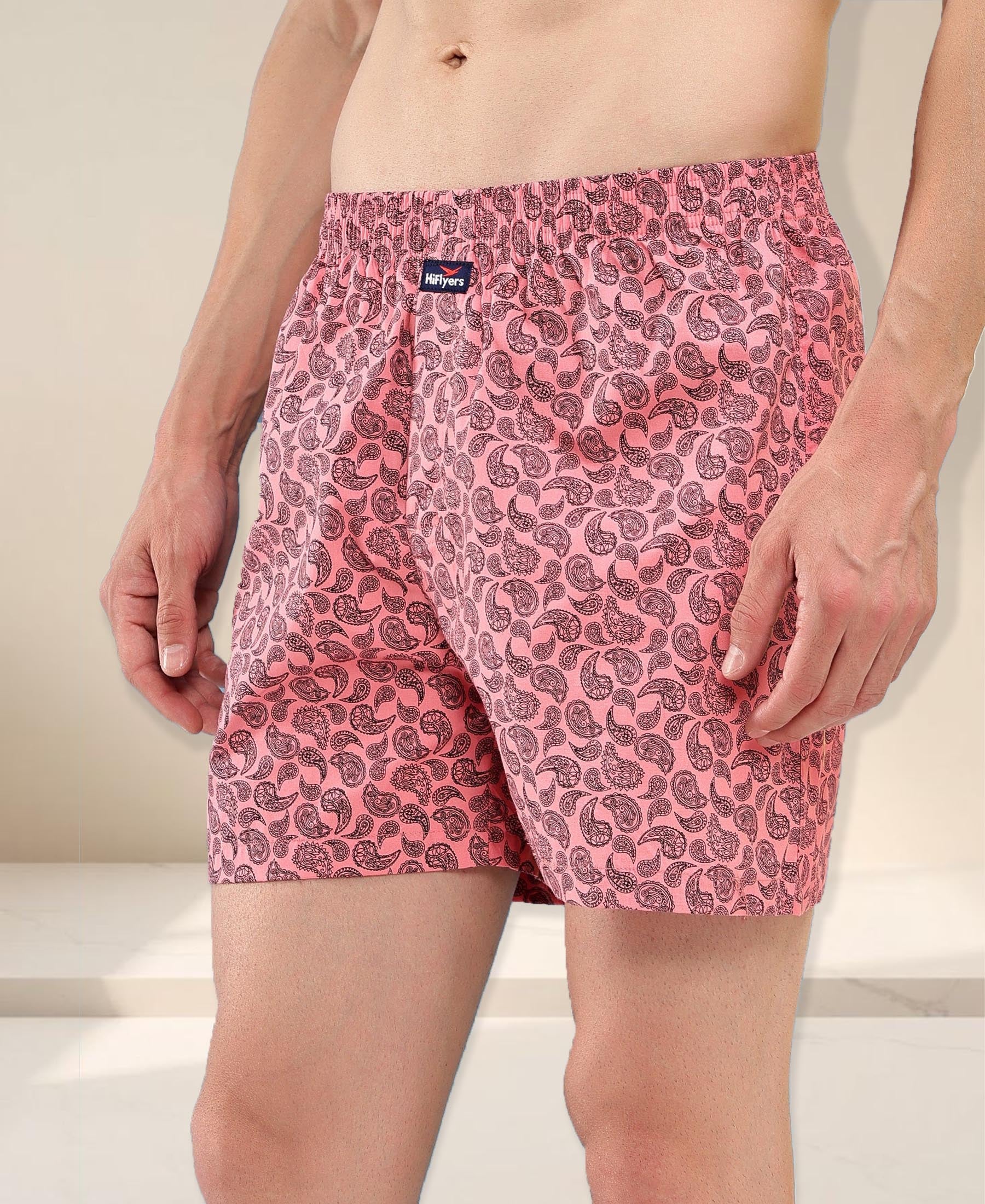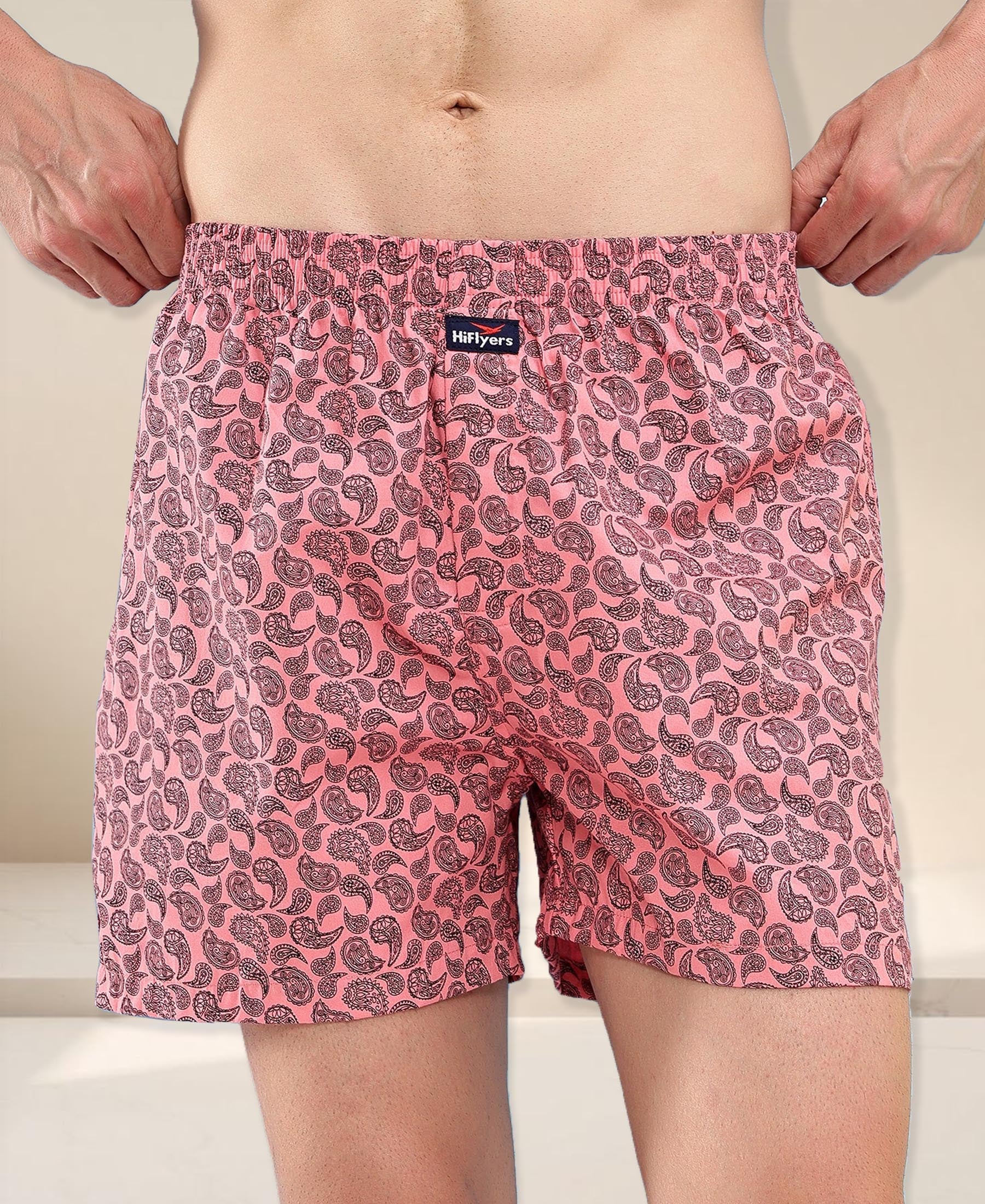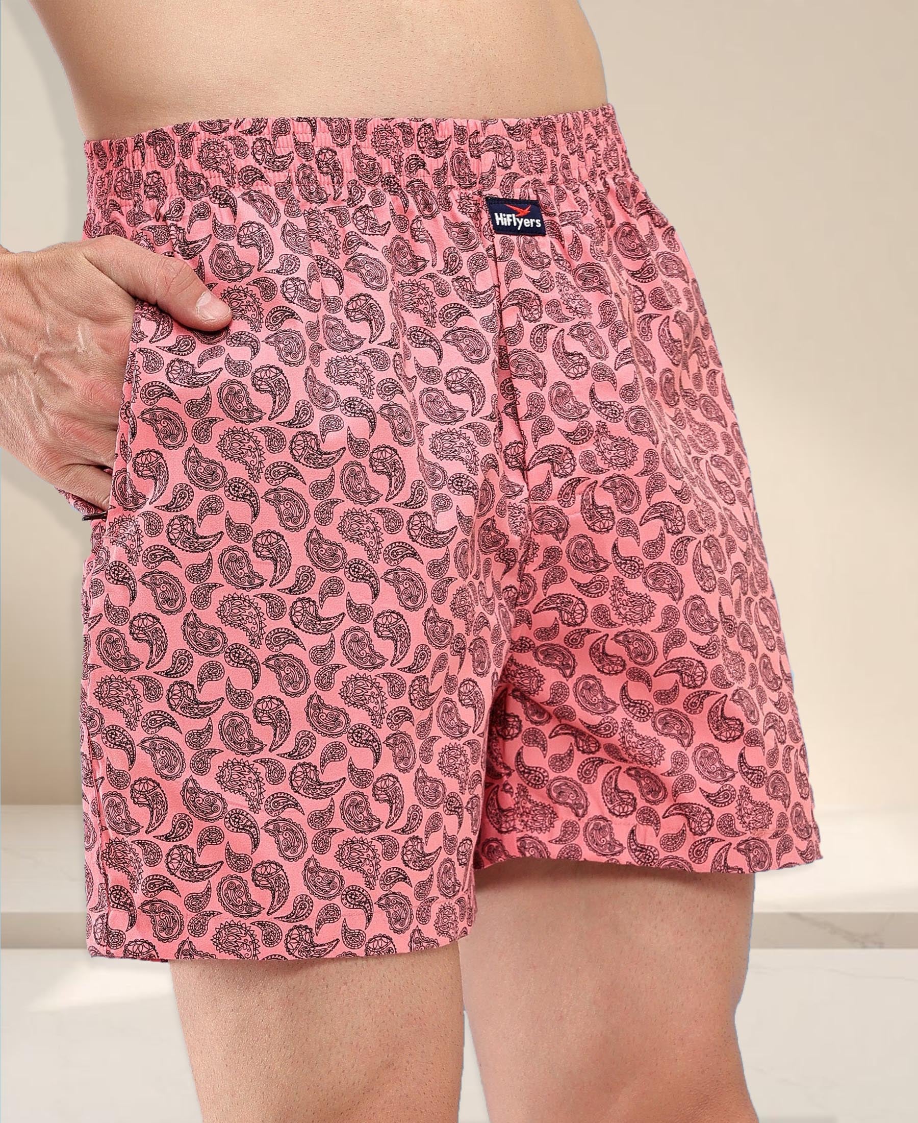 HiFlyers Men Regular Fit Printed Super Combed Cotton Woven Boxer Short Pack Of 1 Pink