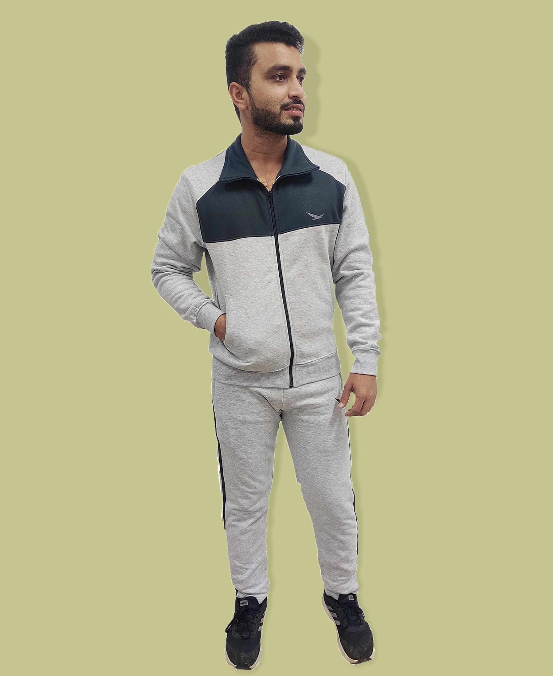 HiFlyers Mens Grey Regular Fit Solid Fleece Tracksuit