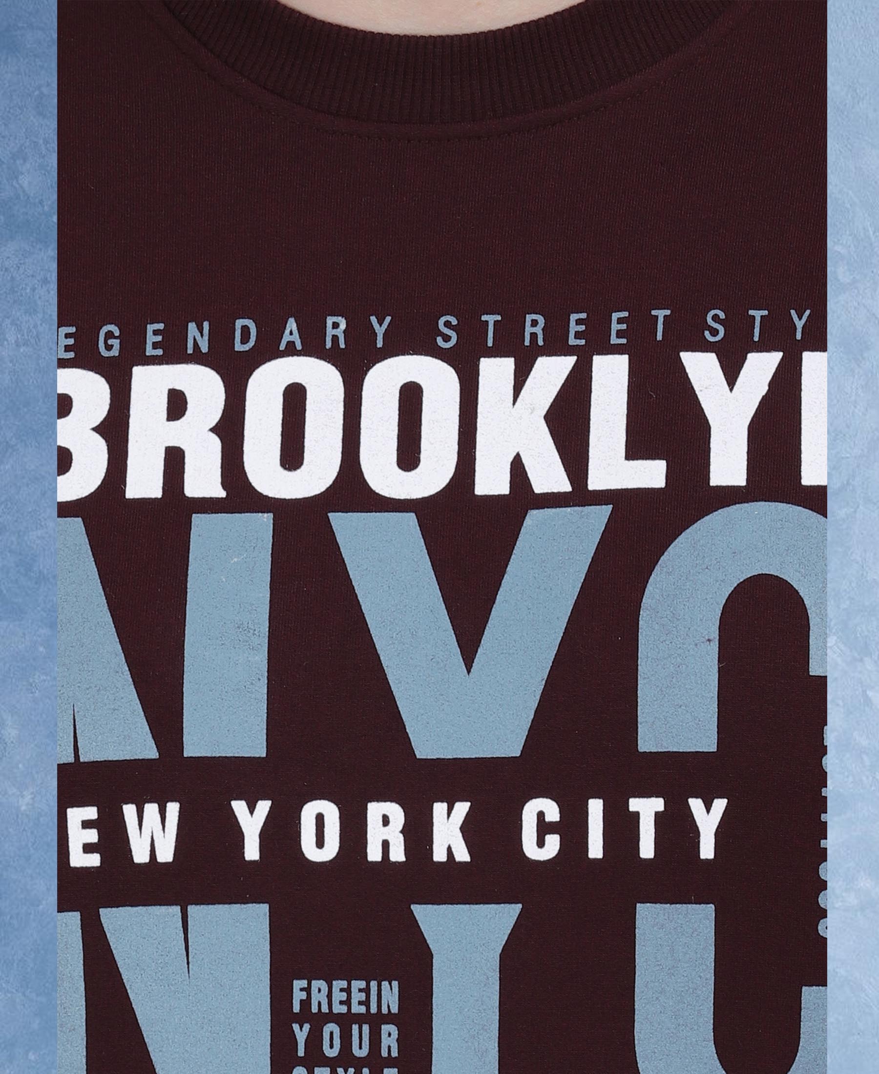 HiFlyers Mens Maroon Slim Fit Printed Round Neck Sweatshirt