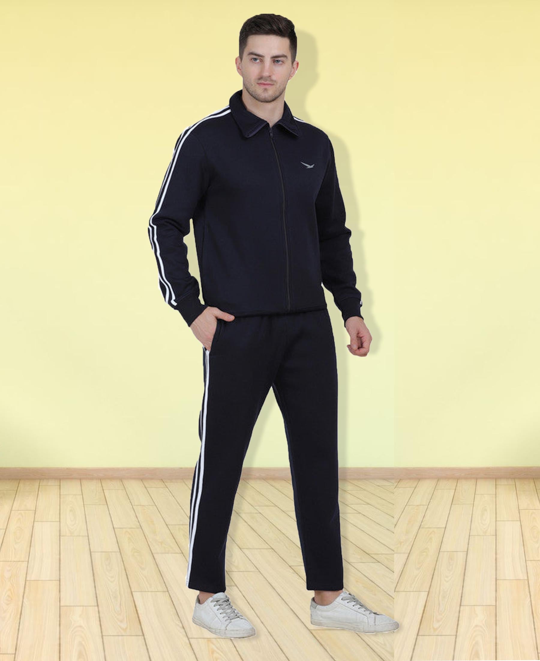 HiFlyers Mens Navy Regular Fit Solid Micro Polyester Fabric Tracksuit (All Season)