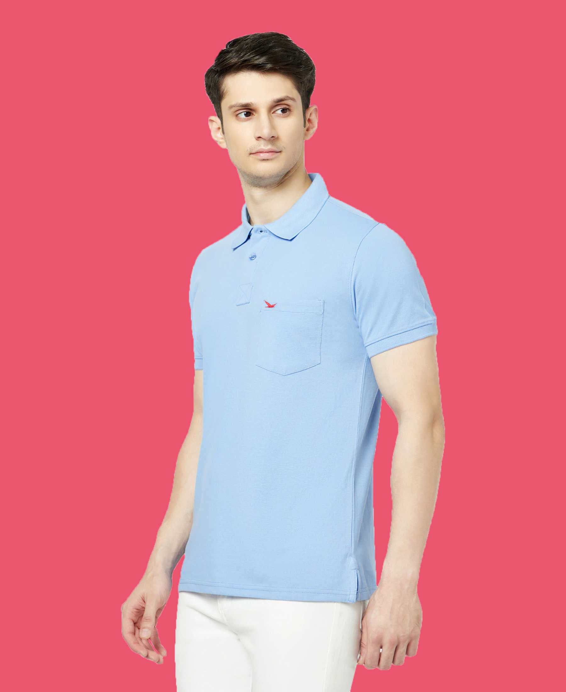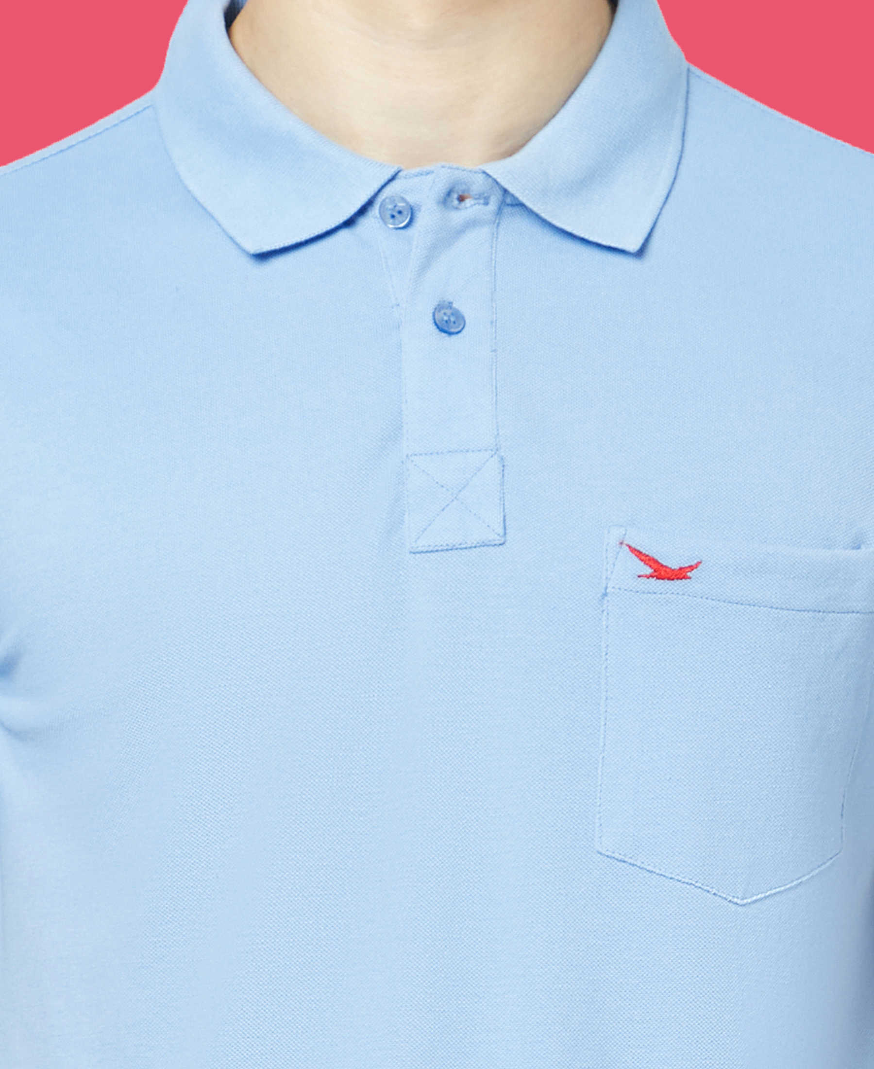 HiFlyers Men'S Solid Regular Fit Polo T-Shirt With Pocket -Light Sky Blue